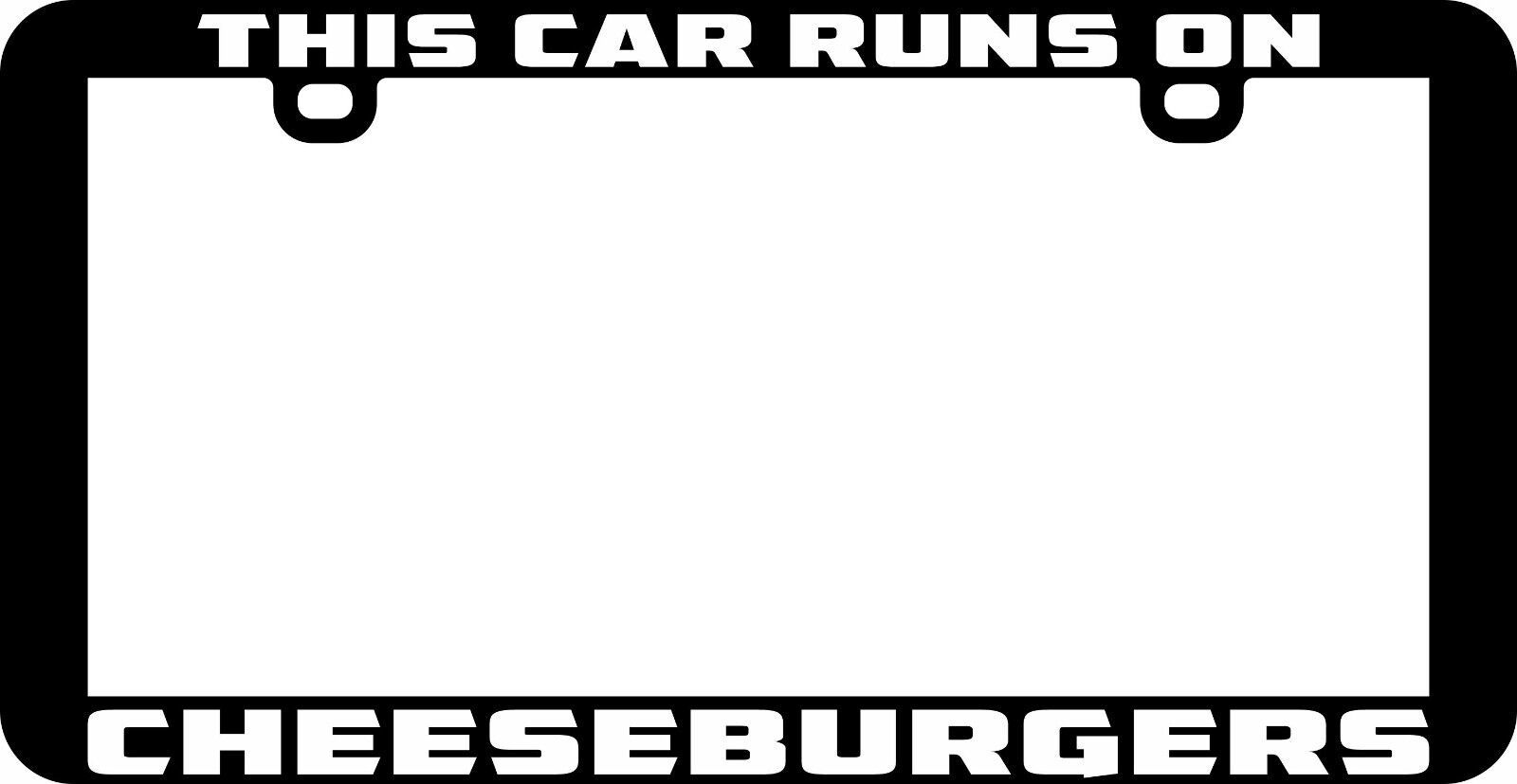 THIS CAR RUNS ON CHEESEBURGERS FUNNY HUMOR LICENSE PLATE FRAME HOLDER