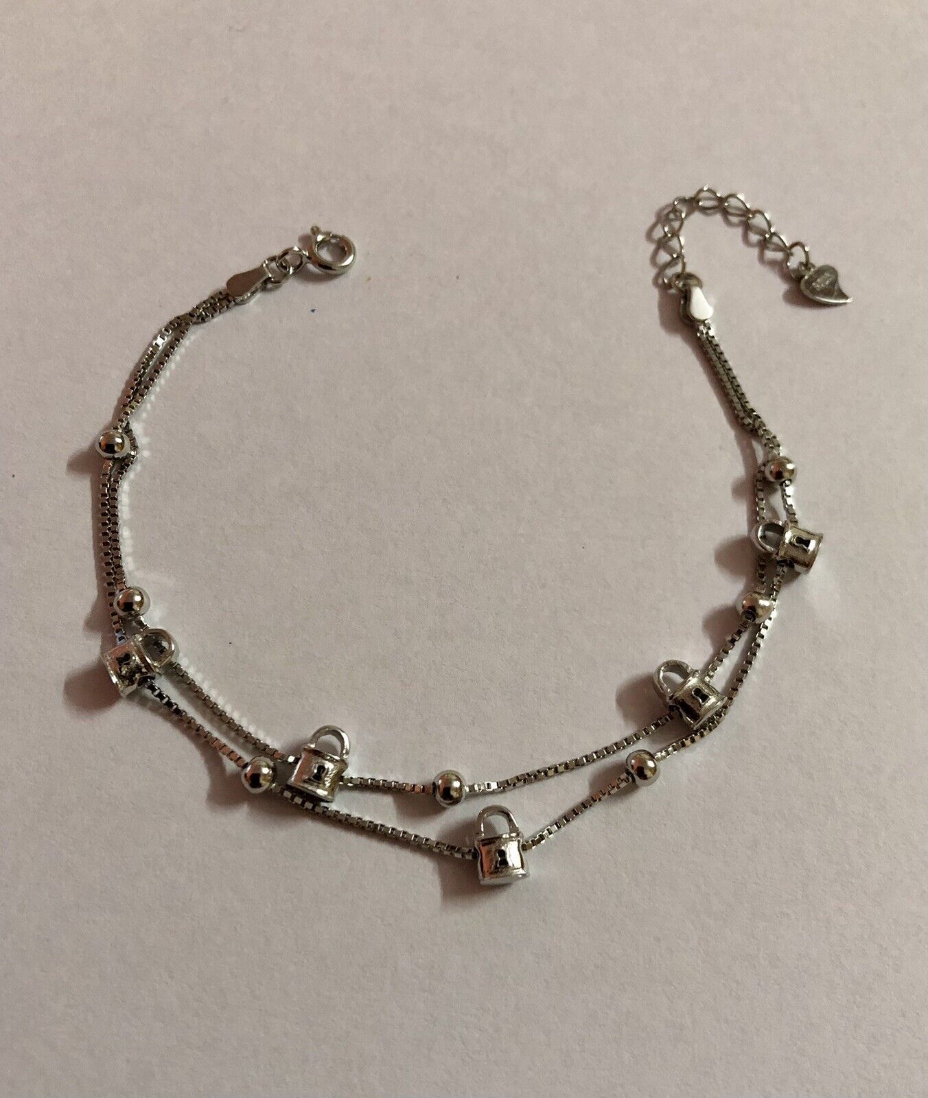 Pulsera con diseño de candado de circonita cúbica de plata de ley 925,...