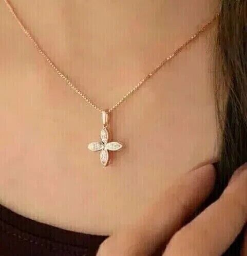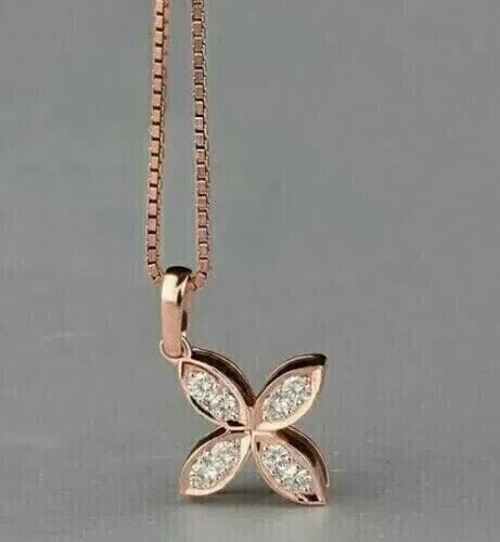 1.20Ct Round Cut Diamond Beautiful Flower Pendant 14K Rose Gold Plated
