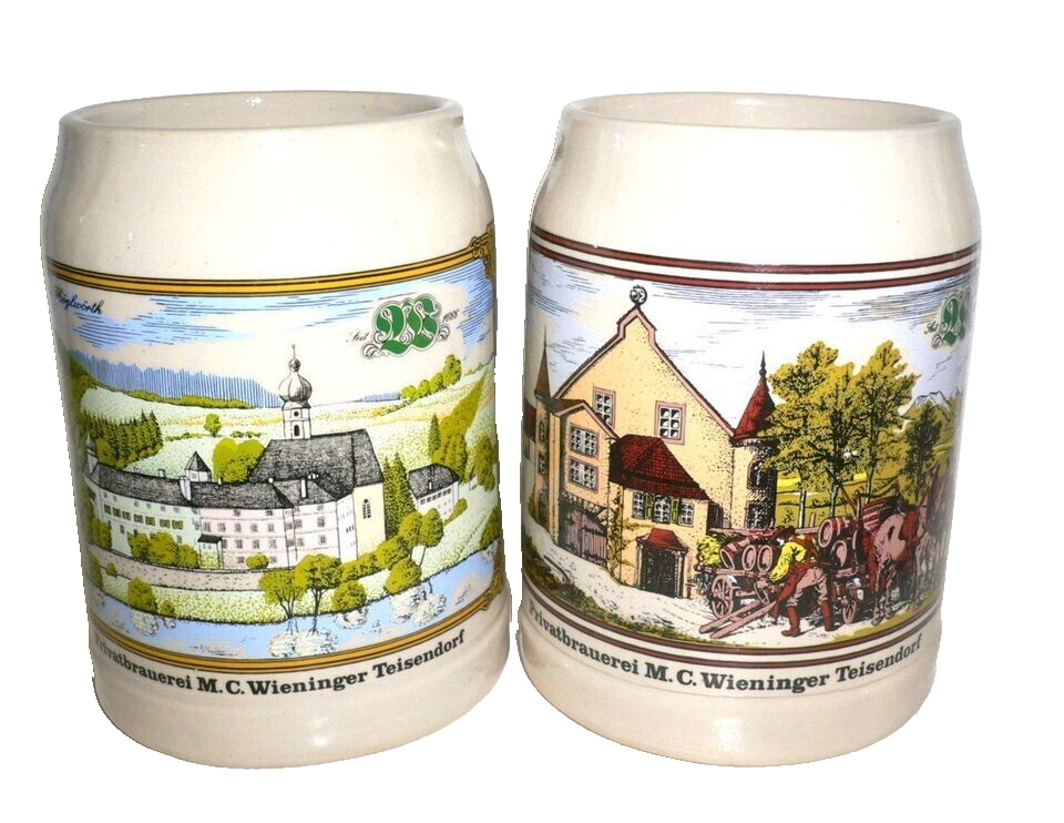 For Sale is a wonderfull, vintage, Set-of-2 0.5L Steins / Mugs (each with Handle on the Back) from a variety of German Breweries, some closed out-of-operation, in Germany.