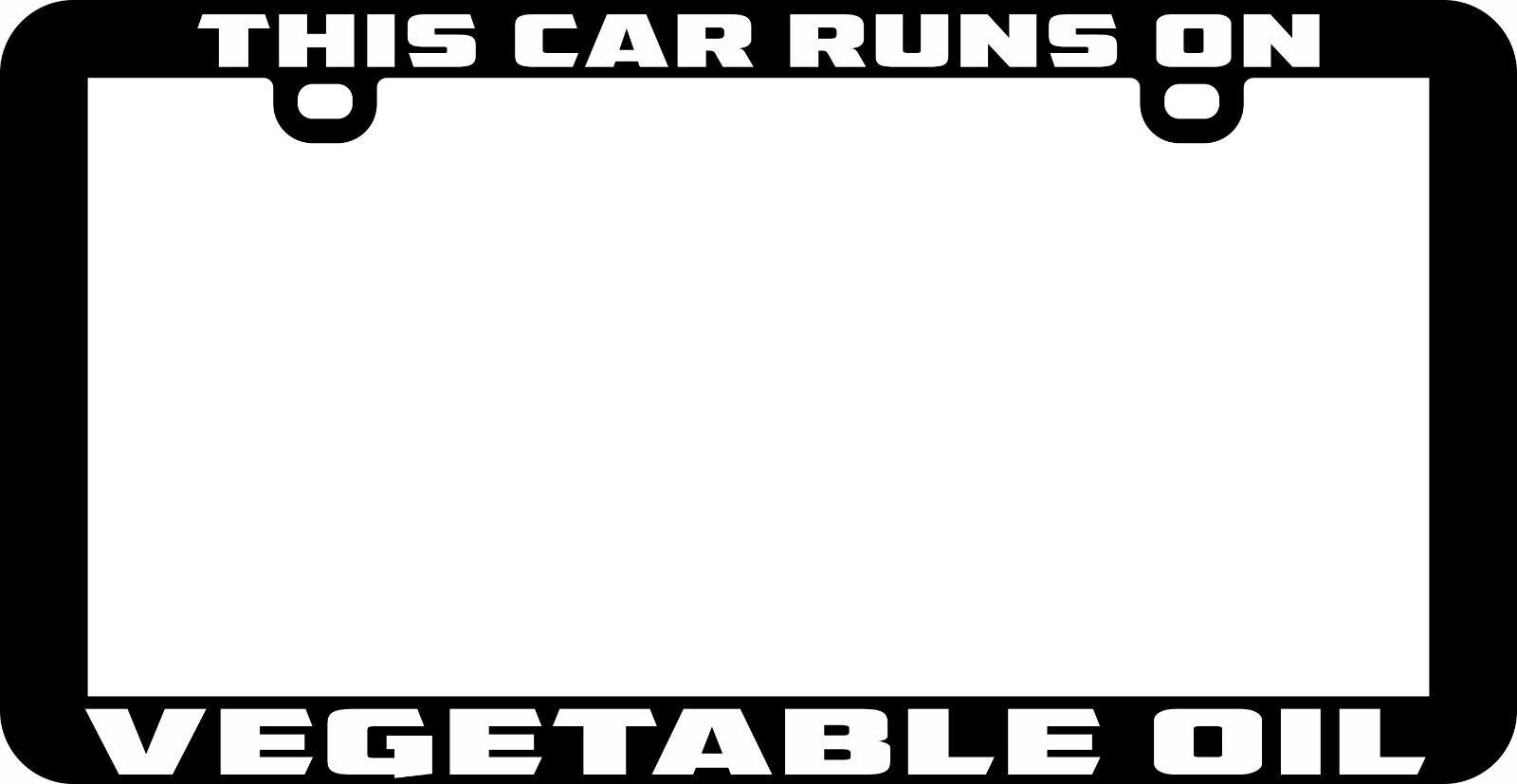 THIS CAR RUNS ON VEGETABLE OIL FUNNY HUMOR LICENSE PLATE FRAME HOLDER