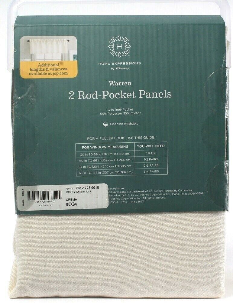 1 Ct Home Expressions 84" 2 Rod Pocket Panel Set Warren 40in x 84in Each Crema
