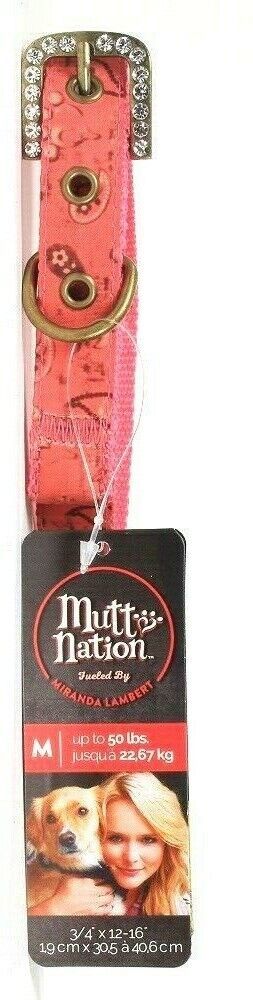 1 MuttNation Fueled By Miranda Lambert M Up To 50 Lbs 3/4" X 12 To 16" Pink Paisley Ribbon Overlay CF Collar.