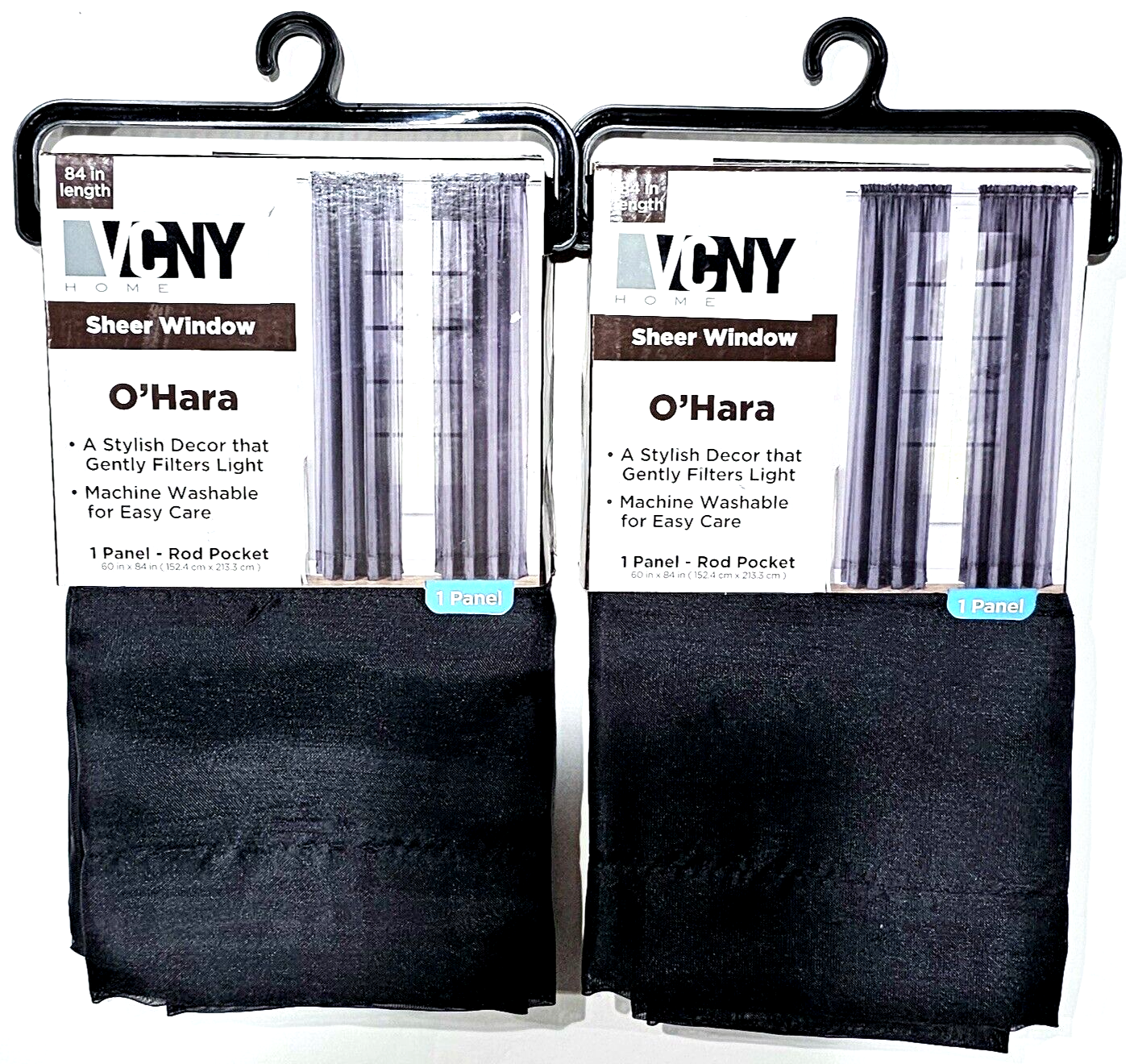 2 Pack VCNY Home Sheer Window O'Hara 60x84 In L Black Polyester