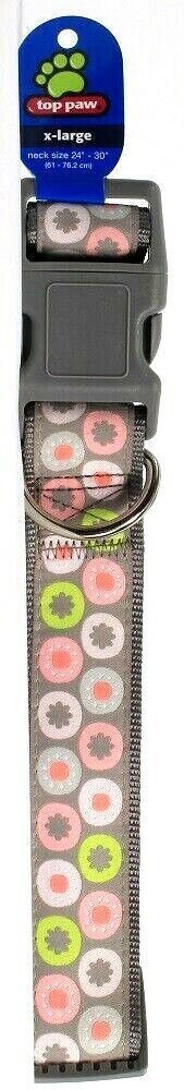 1 Top Paw X-Large Adjustable Collar Neck Size 24" to 30" Gray Green Pink Dots