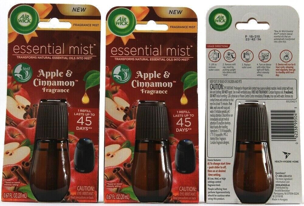 3 Count Air Wick Essential Mist Apple Cinnamon Fragrance Refill 0.67fl Lasts