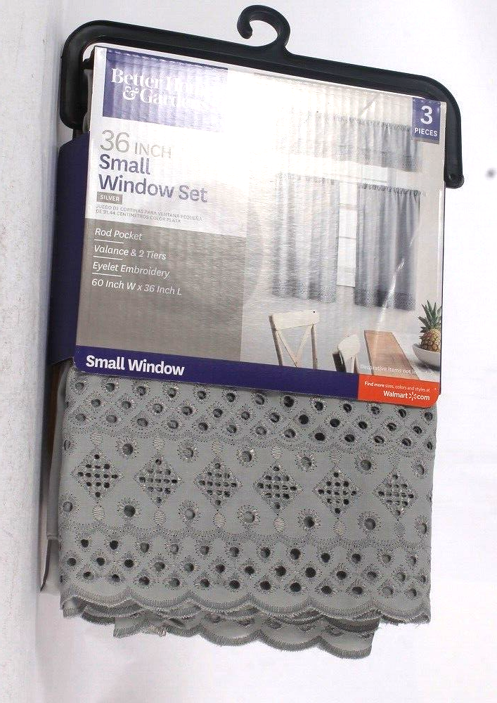 Better Homes & Gardens Silver Small Window Valance & 2 Tiers Set 60" X 36"