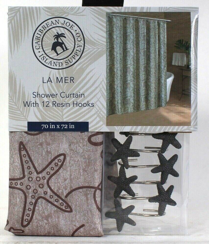 Caribbean Joe Island Supply Co 70" X 72" La Mer Shower Curtain 12 Resin Hooks.