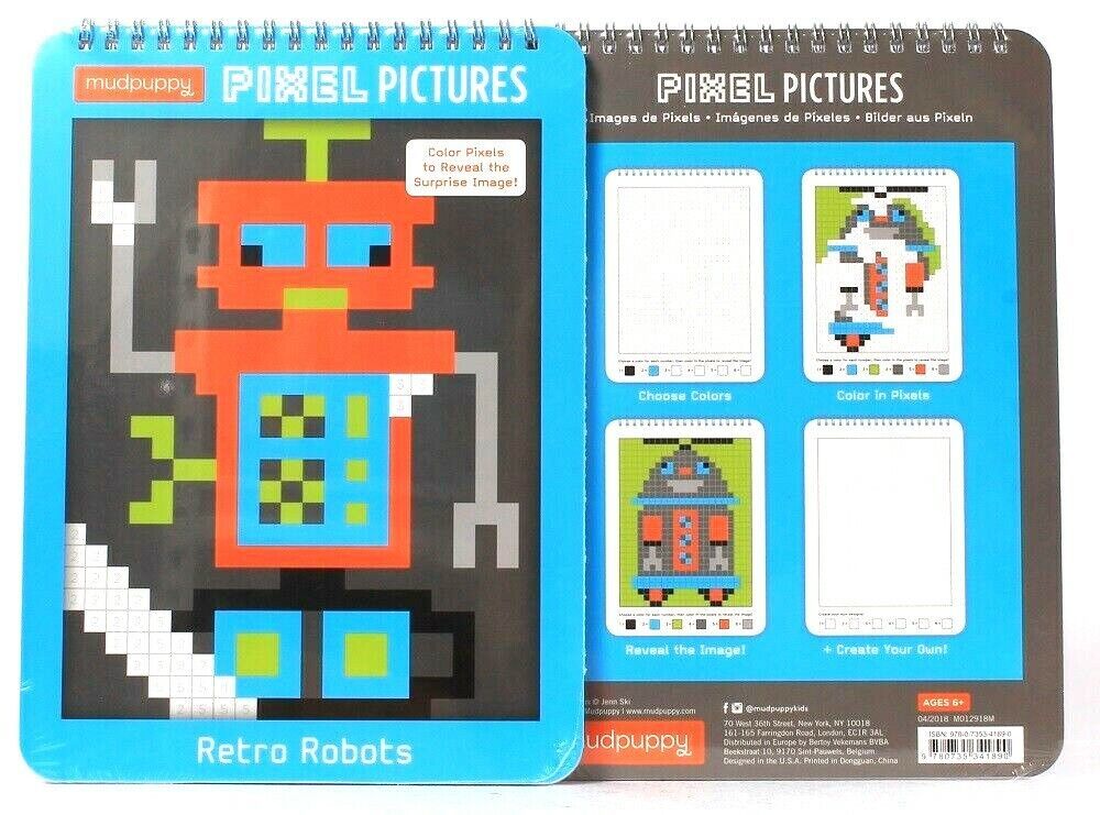 2 Ct Mudpuppy Pixel Pictures Retro Robots Color Pixels To Reveal Surprise Image