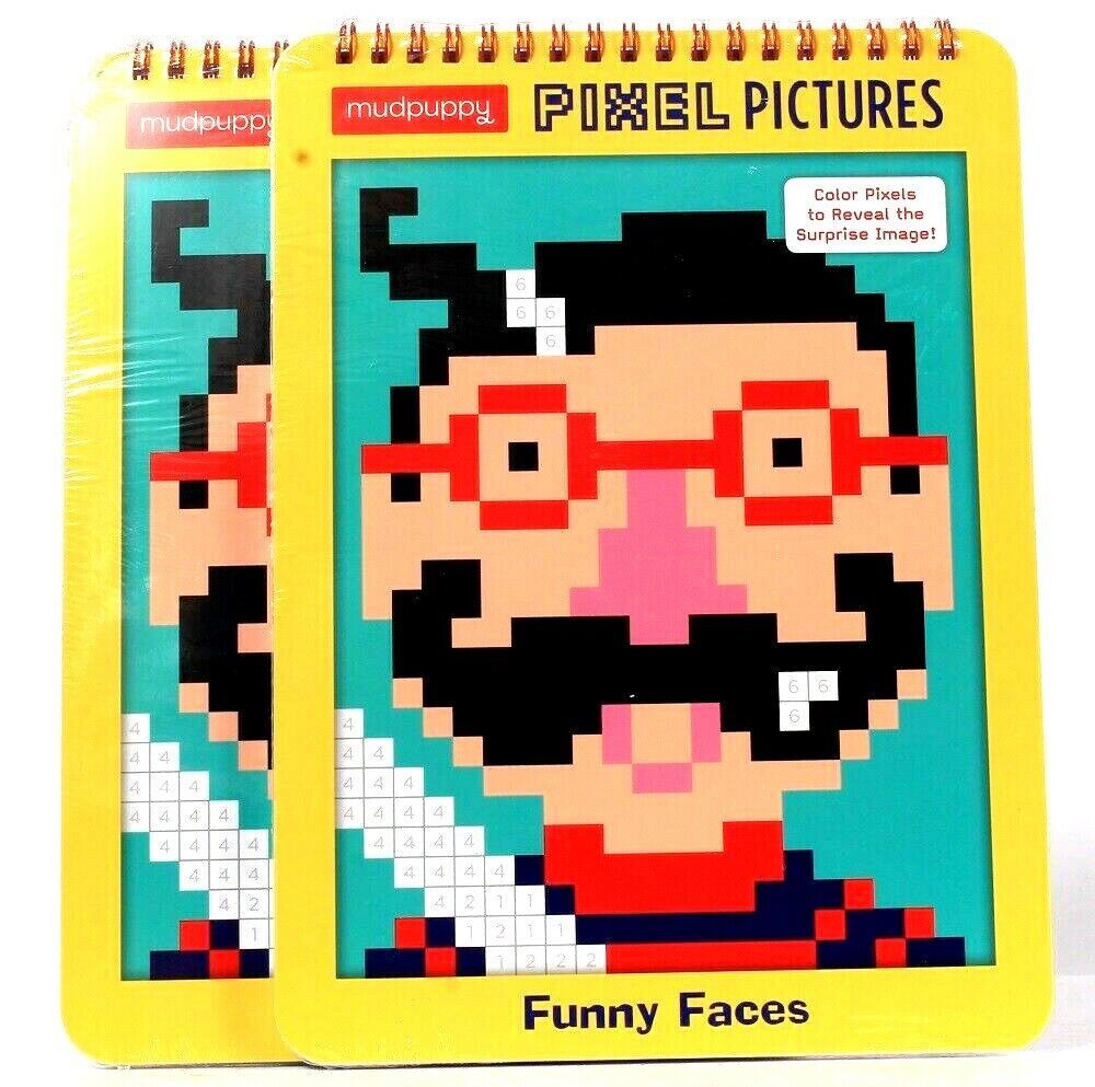 2 Count Mudpuppy Pixel Pictures Funny Faces Color To Reveal Surprise Image! Age 6 Up.