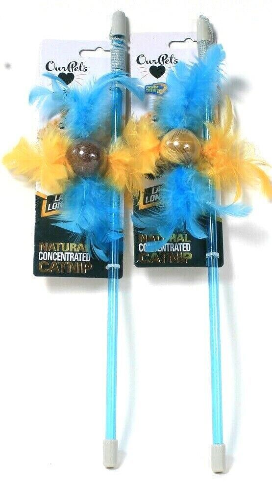 2 OurPets Feather Frenzy Natural Concentrated Cosmic Catnip Long Last Cat Toy.