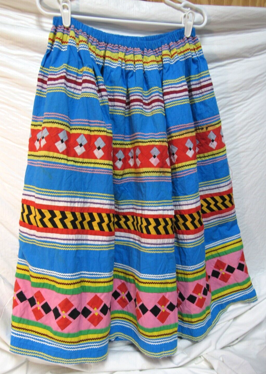 Old Vintage Native American Traditional Womens Seminole Blue Patchwork Skirt 2X