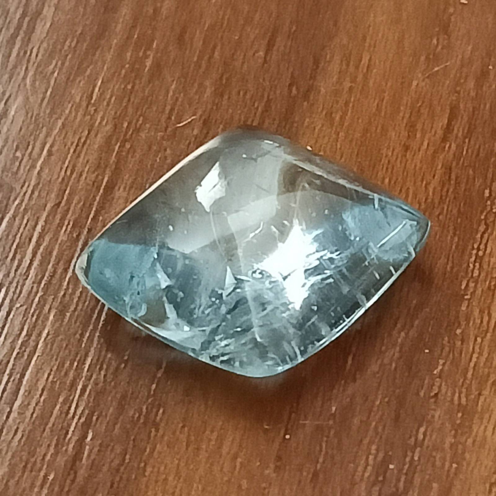 A beautiful aquamarine cushion cabochon suitable for high end jewelry.