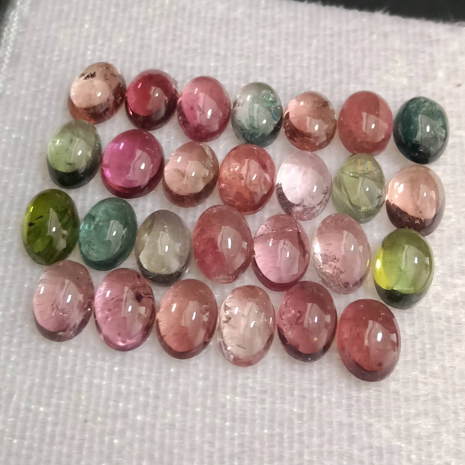 Multi Colored Tourmaline , Cabochons Lot , 25 Carats + Lot , Multi Colored Tourmaline Cabochons , Cabochon Tourmaline , Oval Cabochons