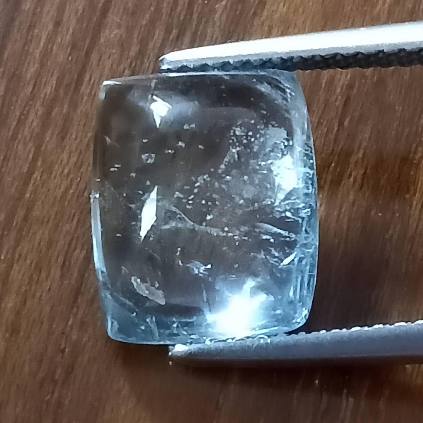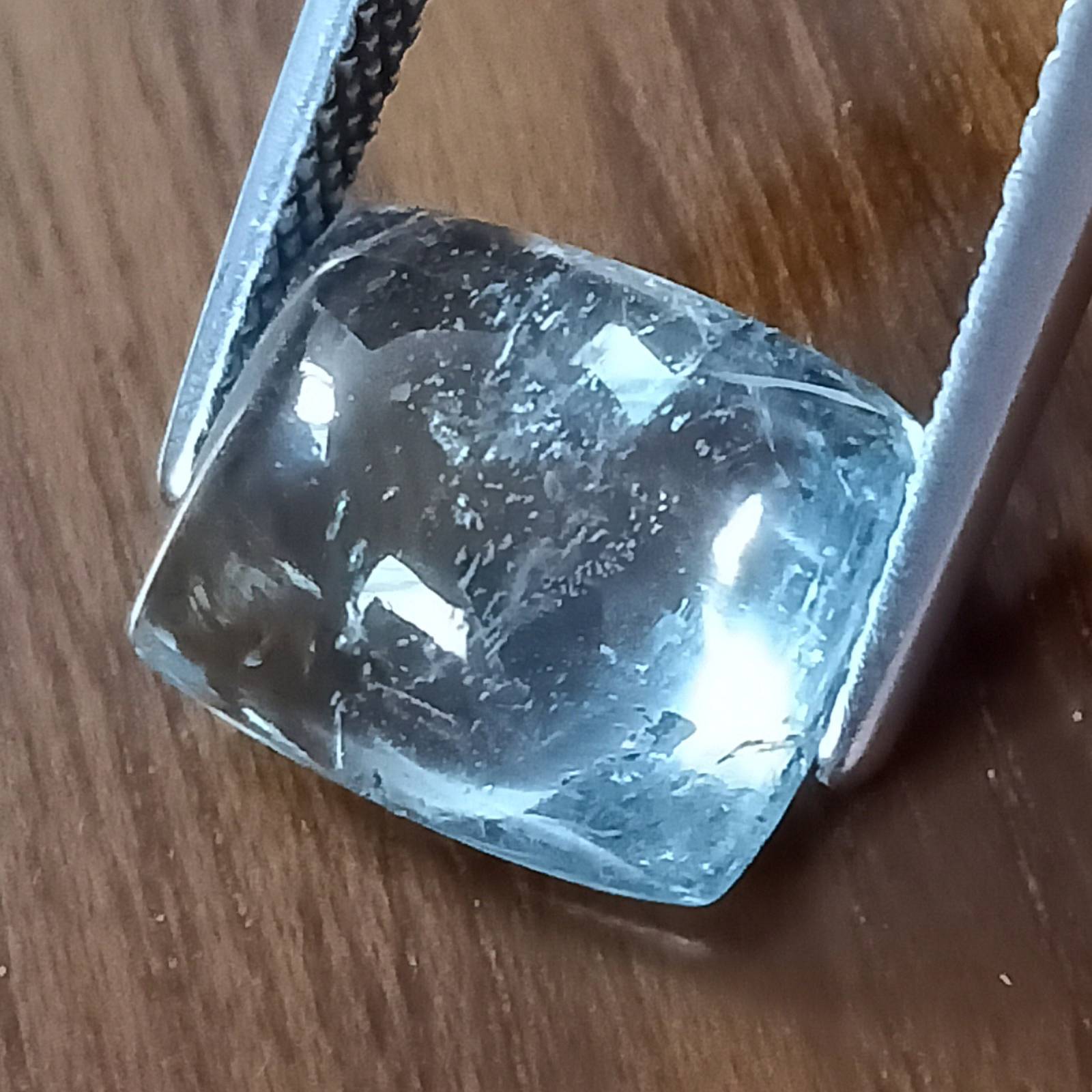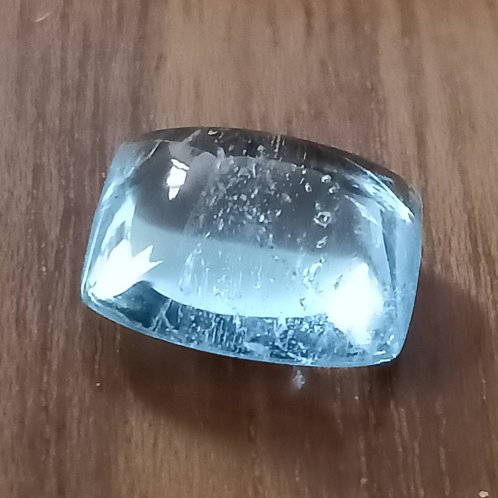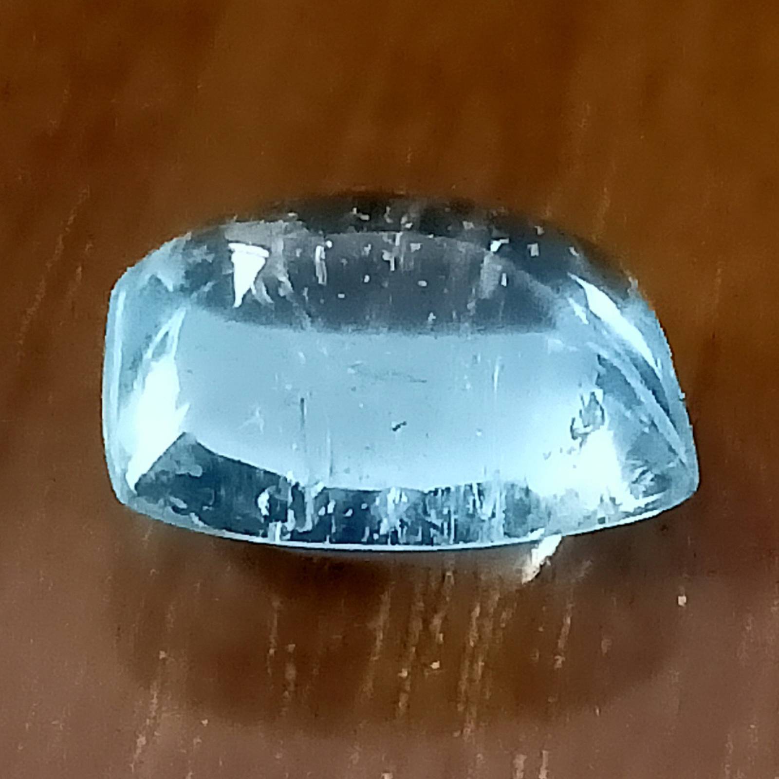 A beautiful aquamarine cushion cabochon suitable for high end jewelry.