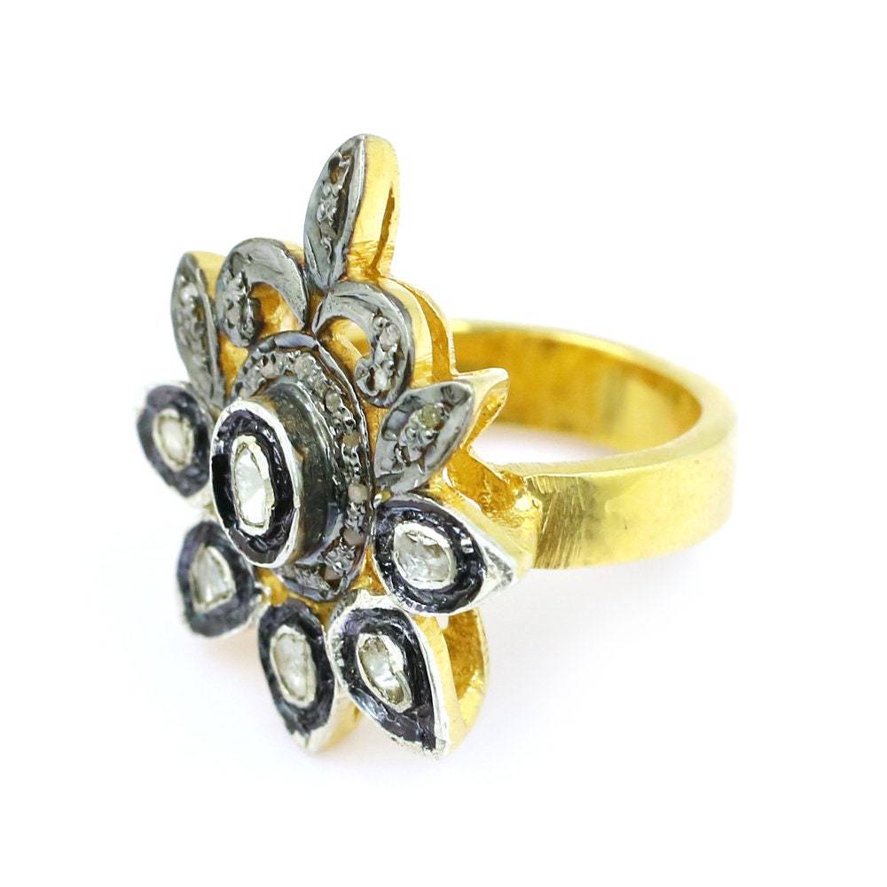 Antique Look Natural Diamonds Ring , Natural Diamond Ring , Handmade Ring , Desi