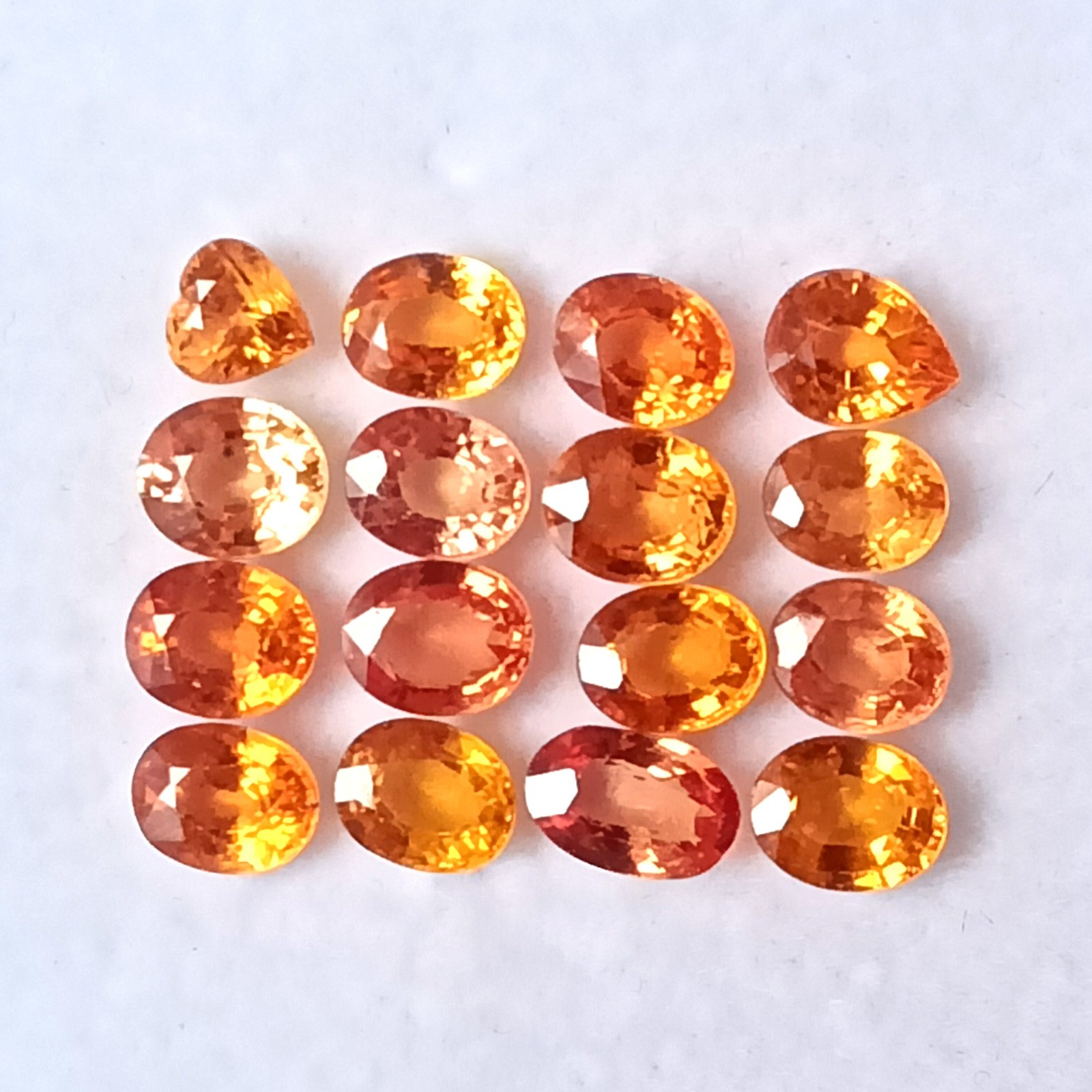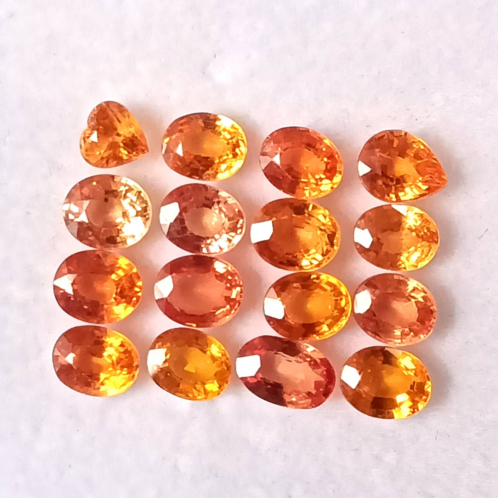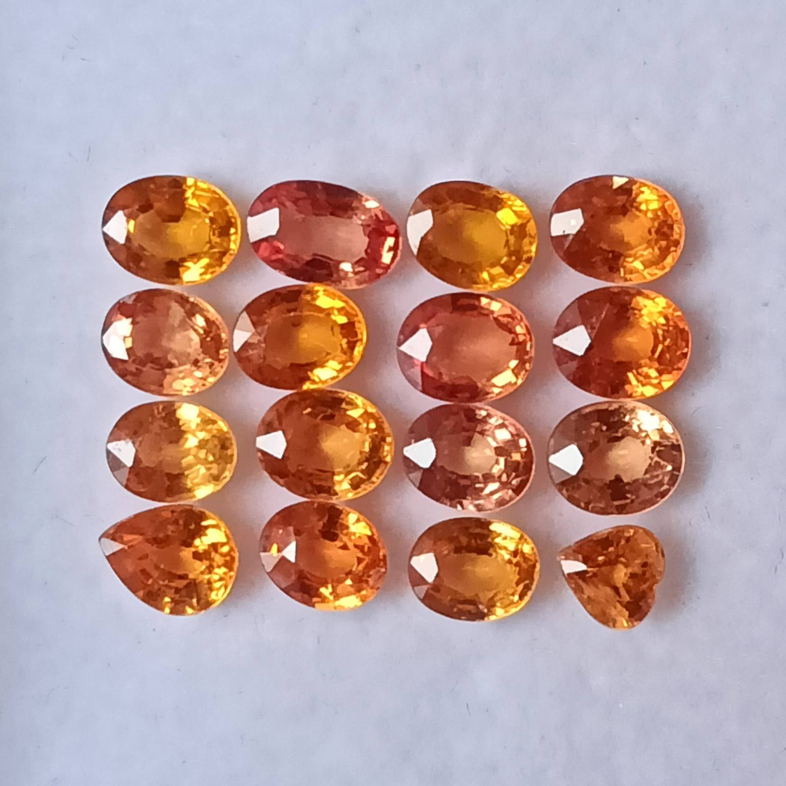 Orange Sapphire, Ovals, Pear, Heart, 7.28 Cts., 16 Pcs. Lot, Peach Orange Sapphire, Sapphire, Padparadscha Shade ,Oval Shape ,Wholesale Lot