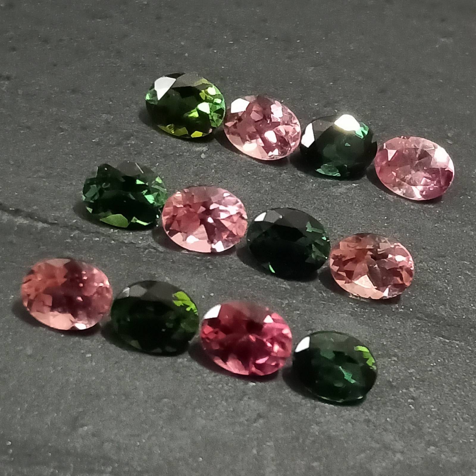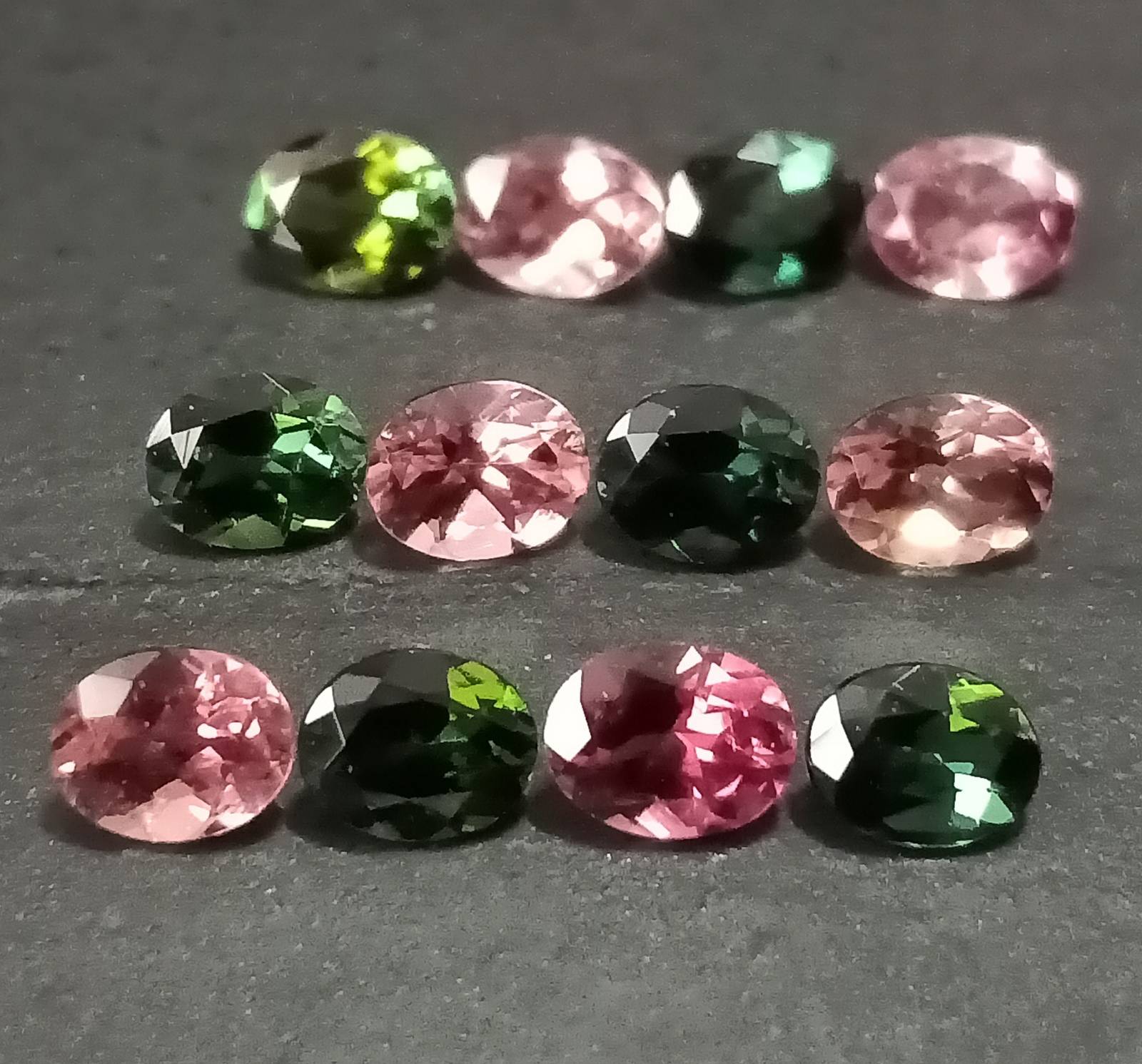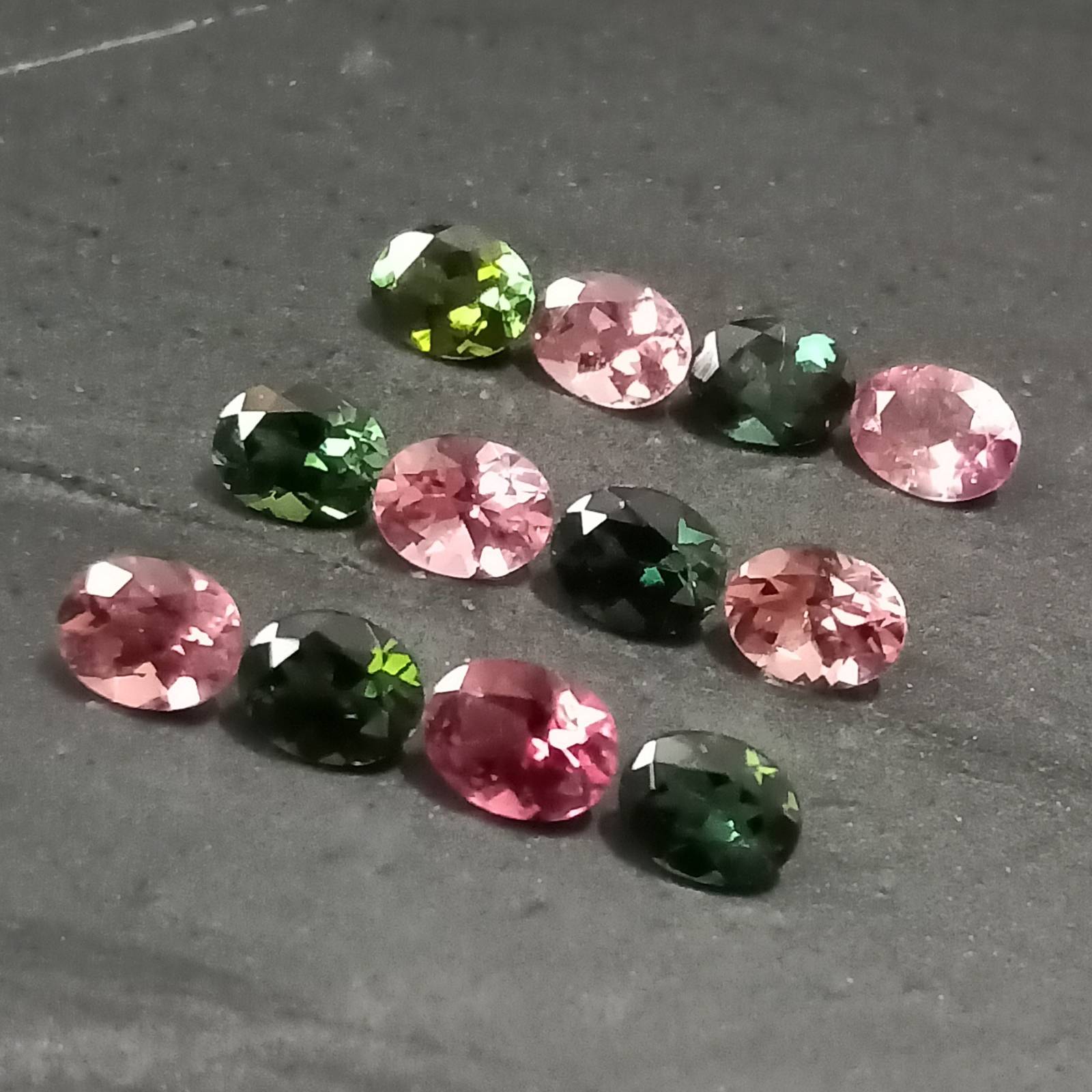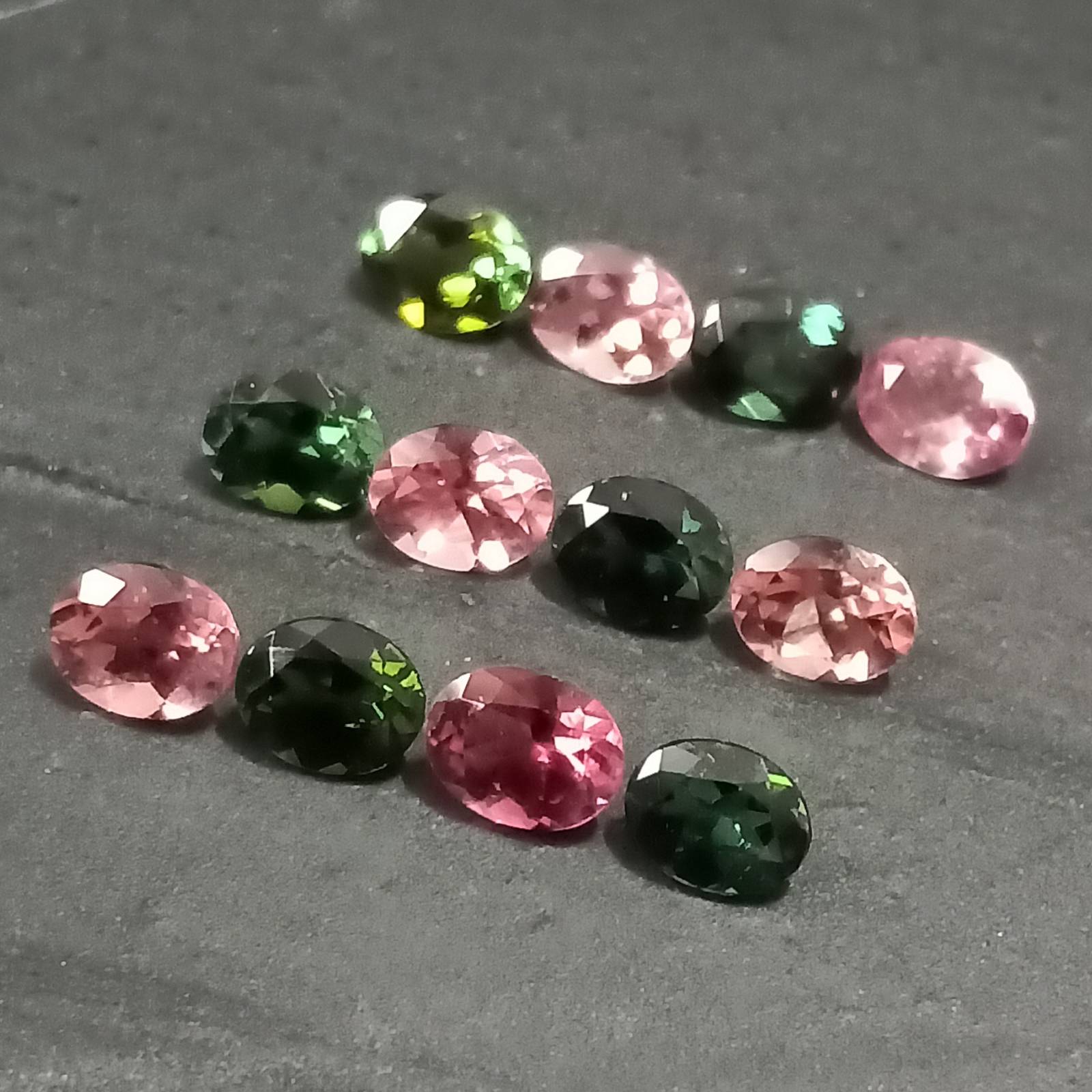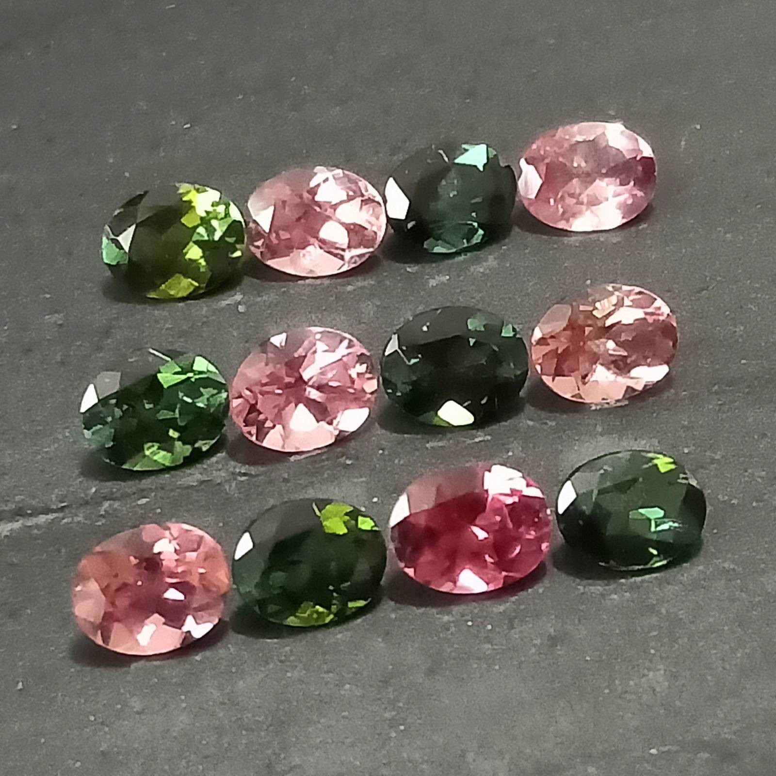 Pink Green Tourmaline , Multi Colored Tourmaline Facet Lot , 12 Pcs , 3.88 Cttw. , Multi Colored Tourmaline Ovals , Faceted Tourmaline Ovals