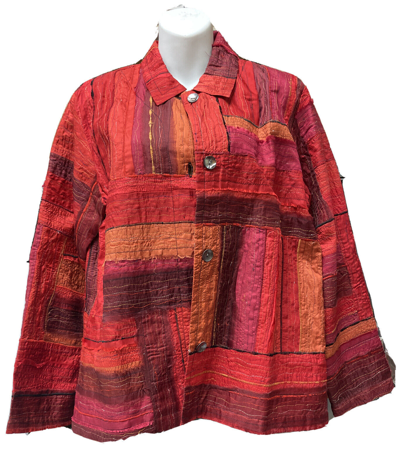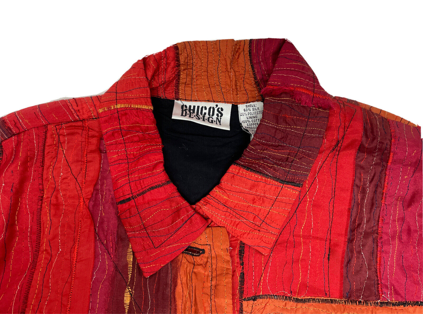 Vintage Chico?s Design Multicolor Coral Red Embroidered Jacket
