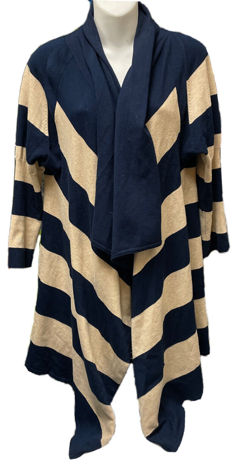 RED Women's Blue White Striped Knit Cardigan Sweater Size XL