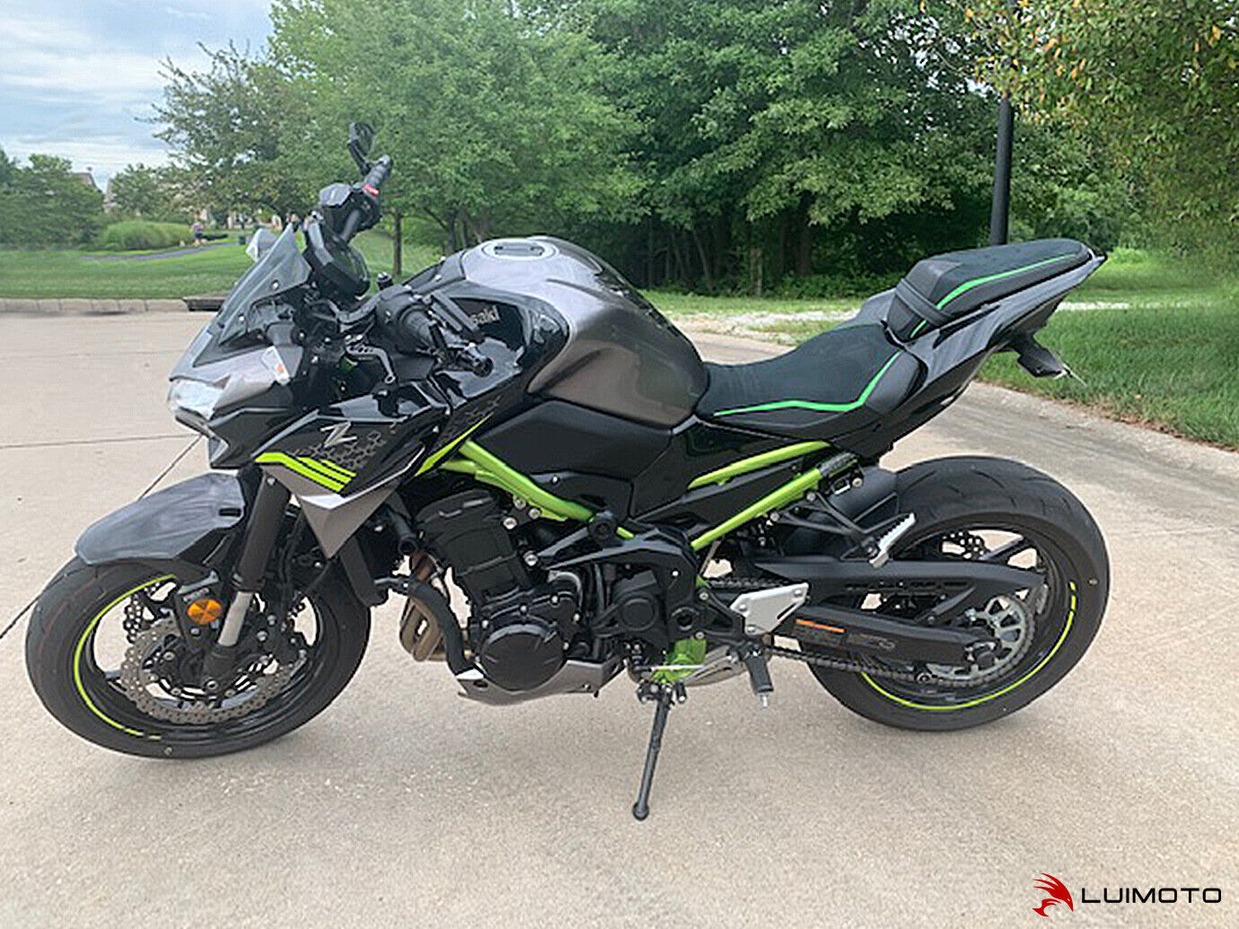 Kawasaki Z900 Seat Cover 2020 2021 2022 2023 Luimoto Black Green Suede Tec-Grip