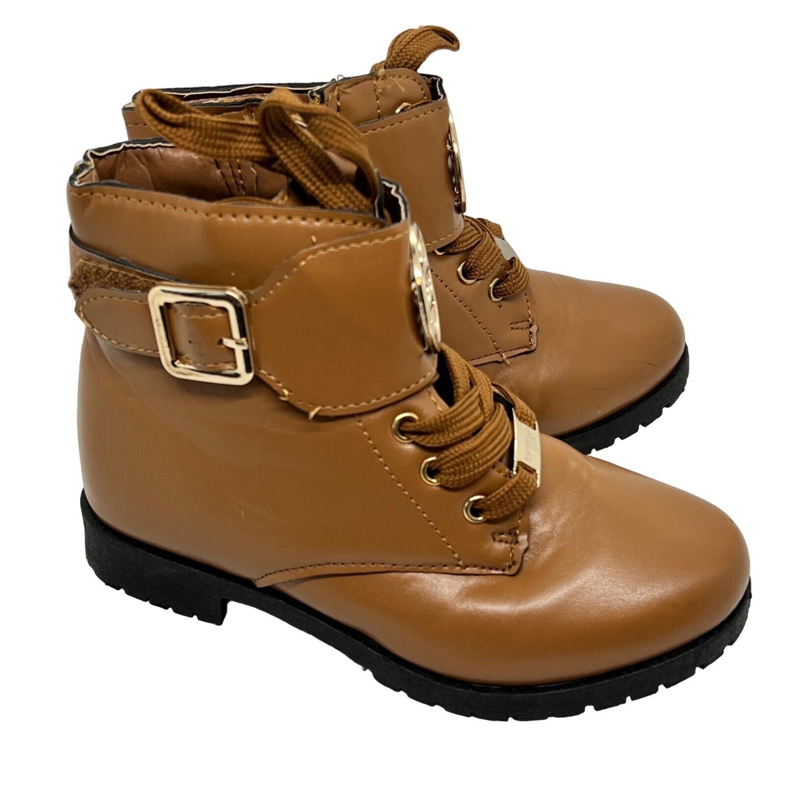 BeBe Girls Brown Combat Boots Booties Gold and 50 similar items