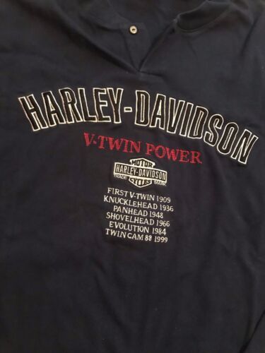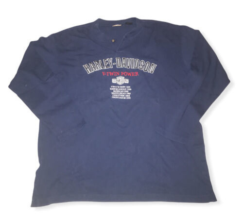 Vintage Harley Davidson V-Twin Power Embroidered Long Sleeve Shirt XXL.
