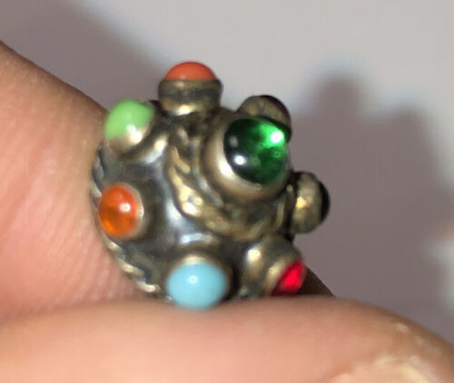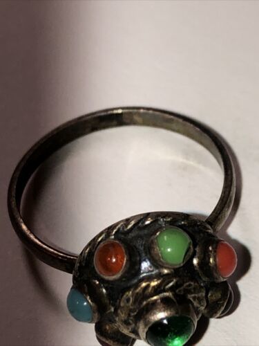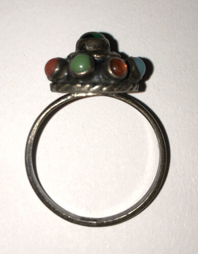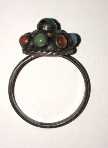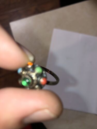 Unique Vintage .925 Silver Colorful Space Saucer Style Look Ring Made In Mexico