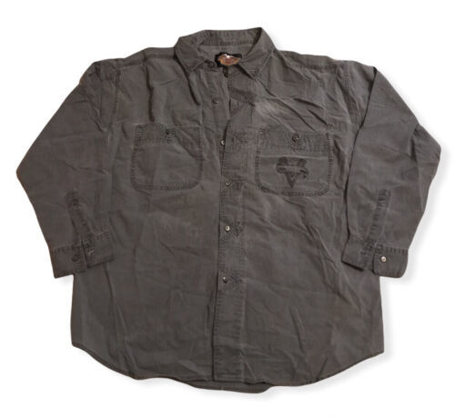 Vintage Harley Davidson Gray Button Up Long Sleeve Shirt XL.