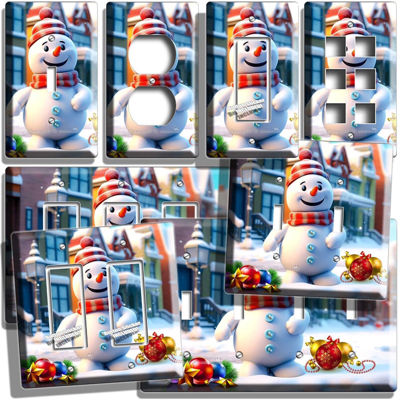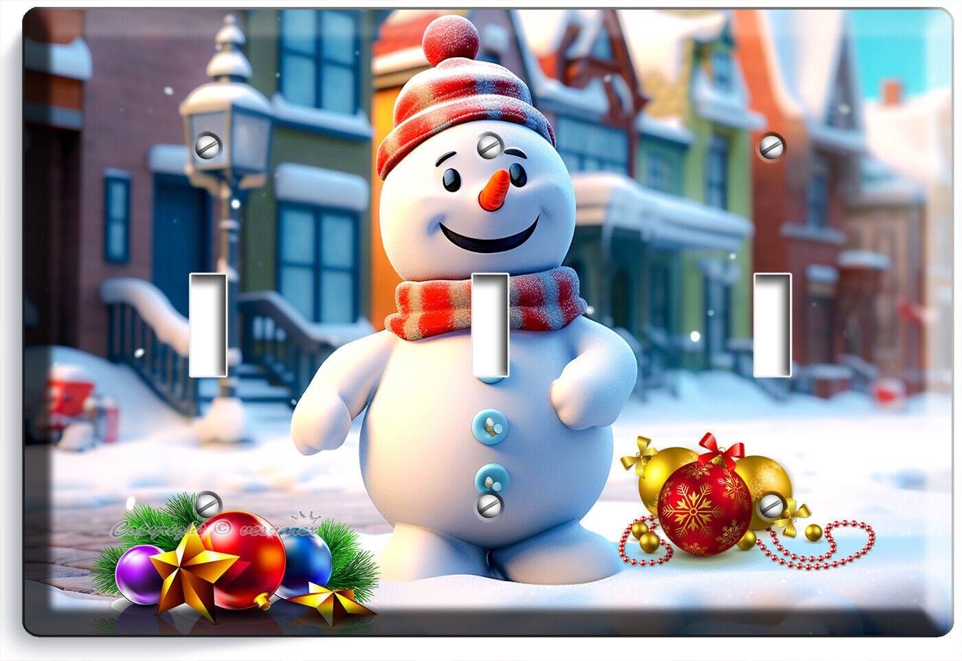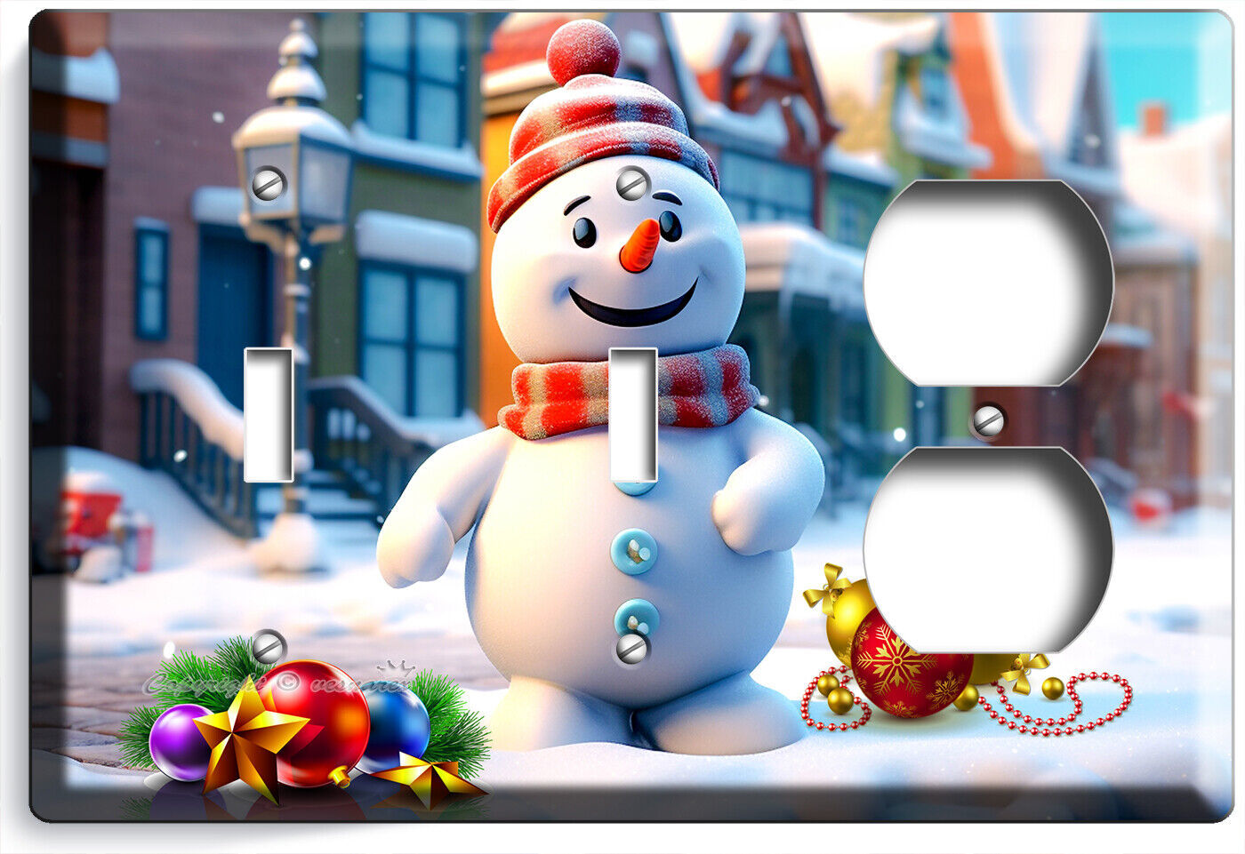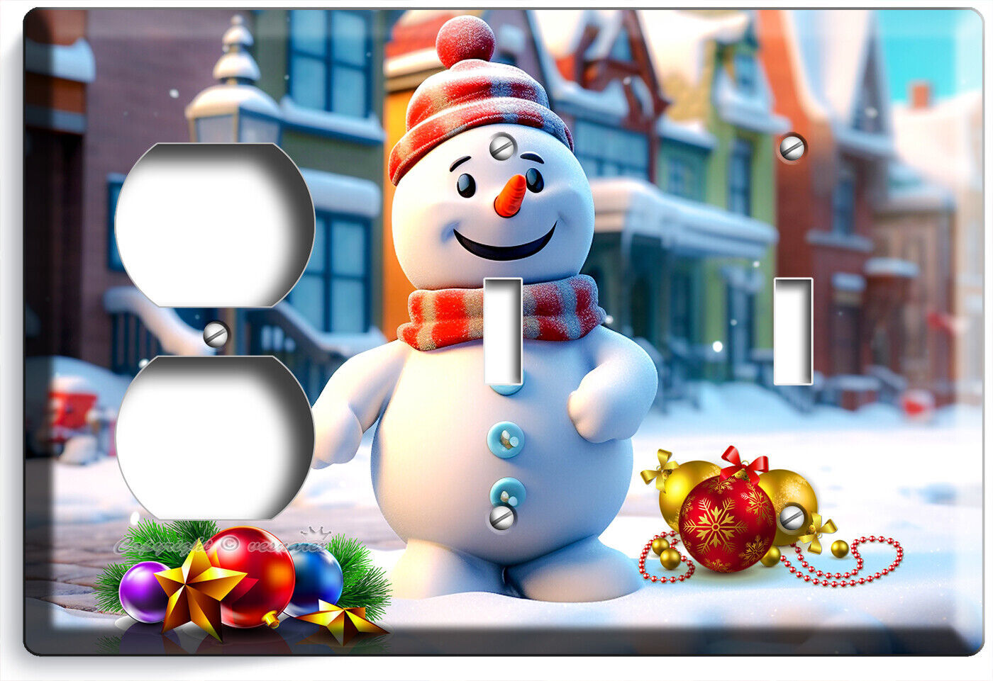 HAPPY SNOWMAN AMERICAN TOWN CHRISTMAS LIGHT SWITCH OUTLET WALL PLATES HOME DECOR