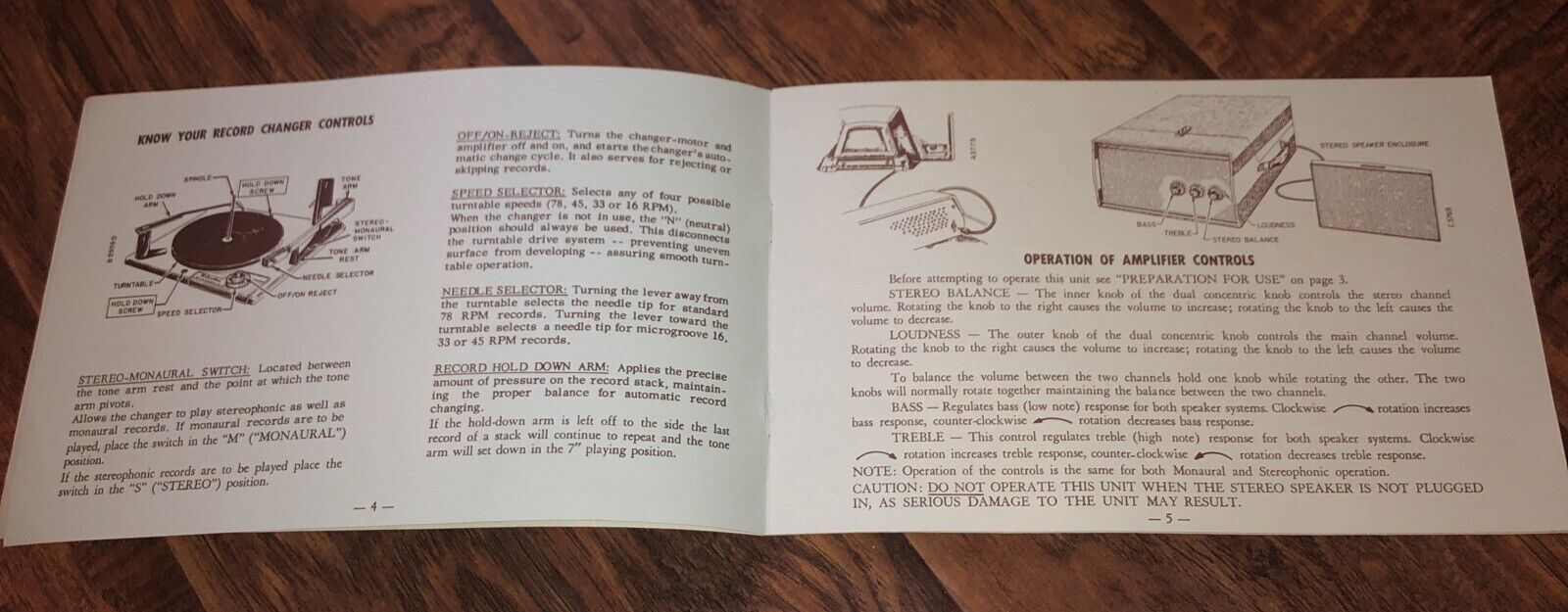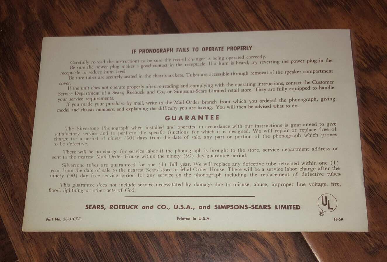 Silvertone High Fidelity Stereo Portable Phonograph Owners Manual 1969 Rare