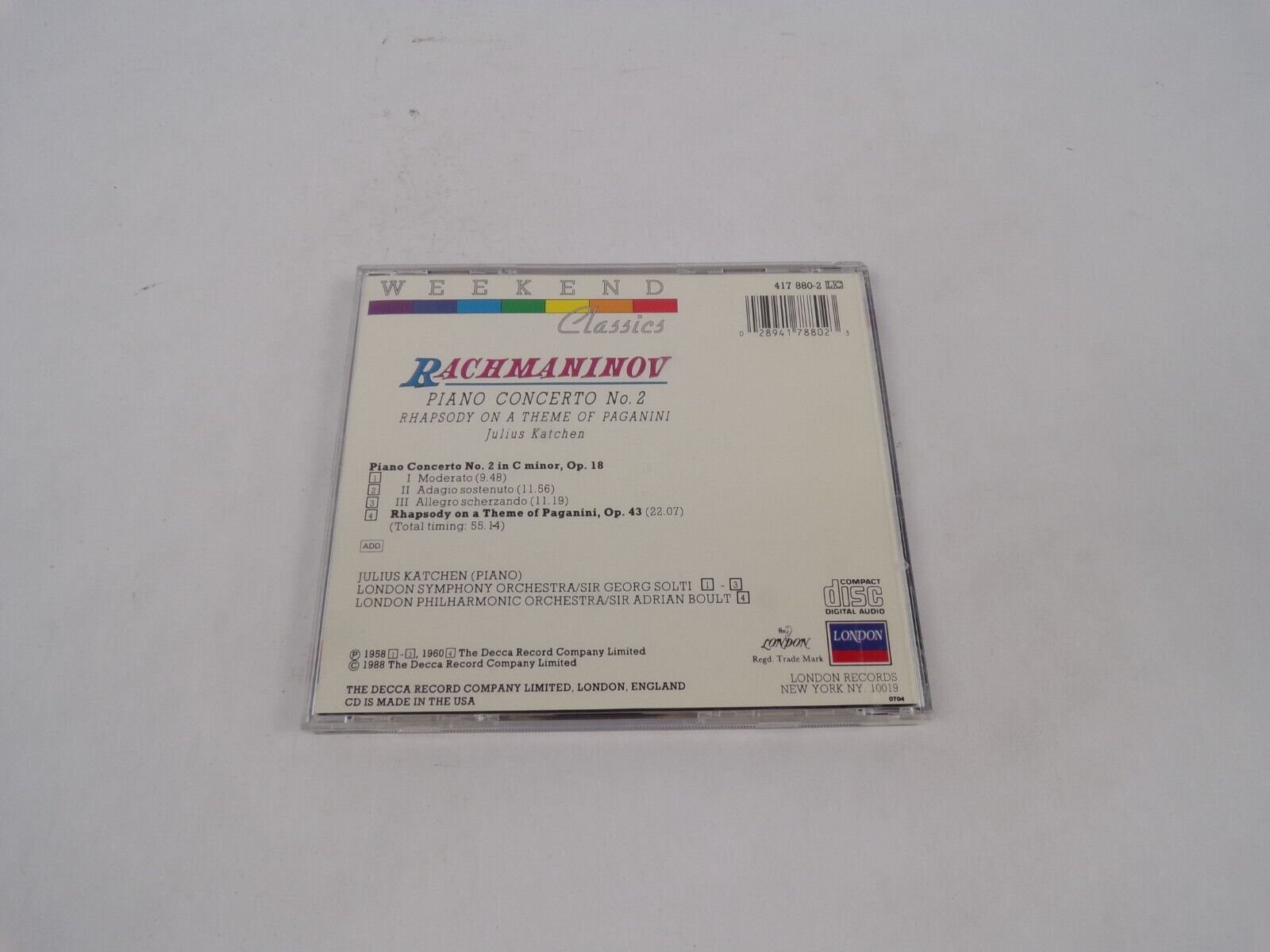 Rachmaninov Piano Concerto Weekend Classies Rhapsody On A Theme Of PaganiniCD#69