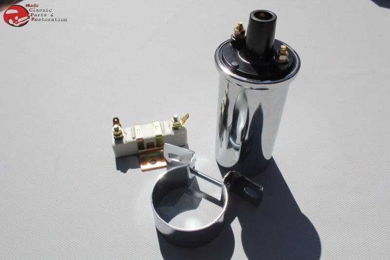 Chrome Plated Ignition Coil w/External Resistor Bracket (New)