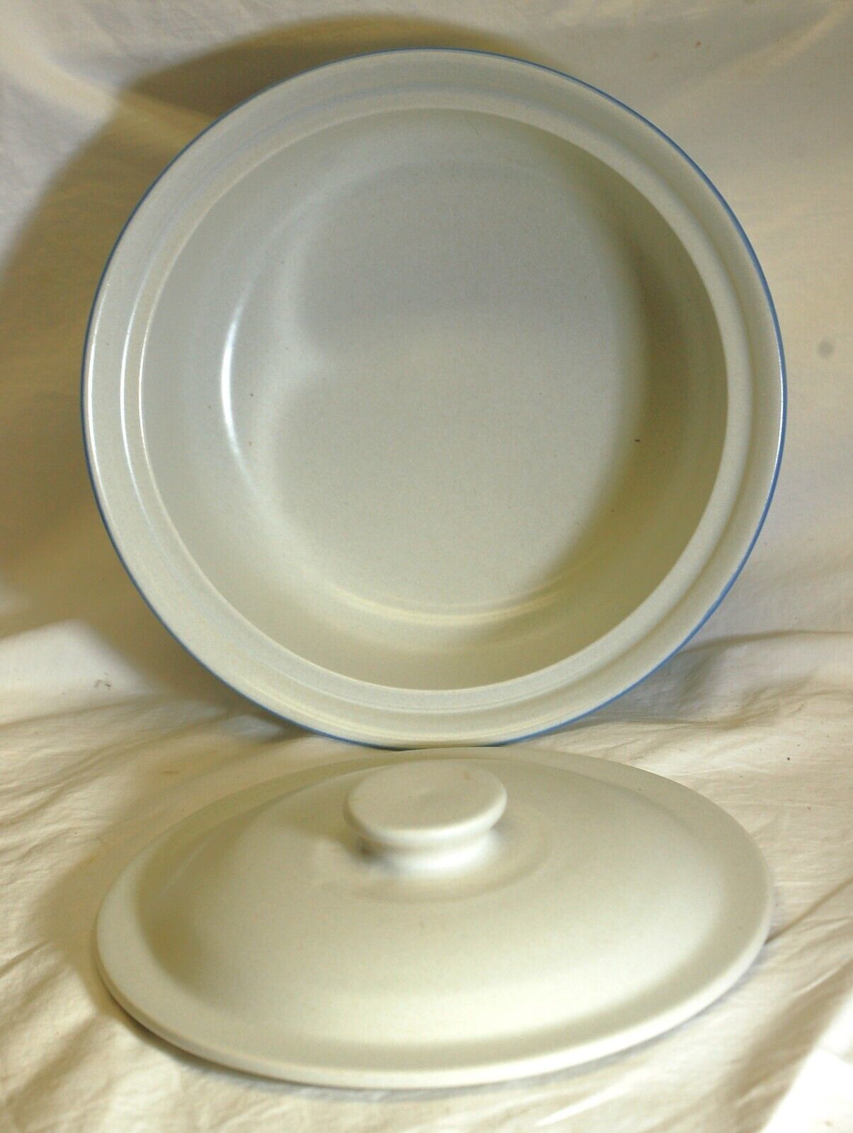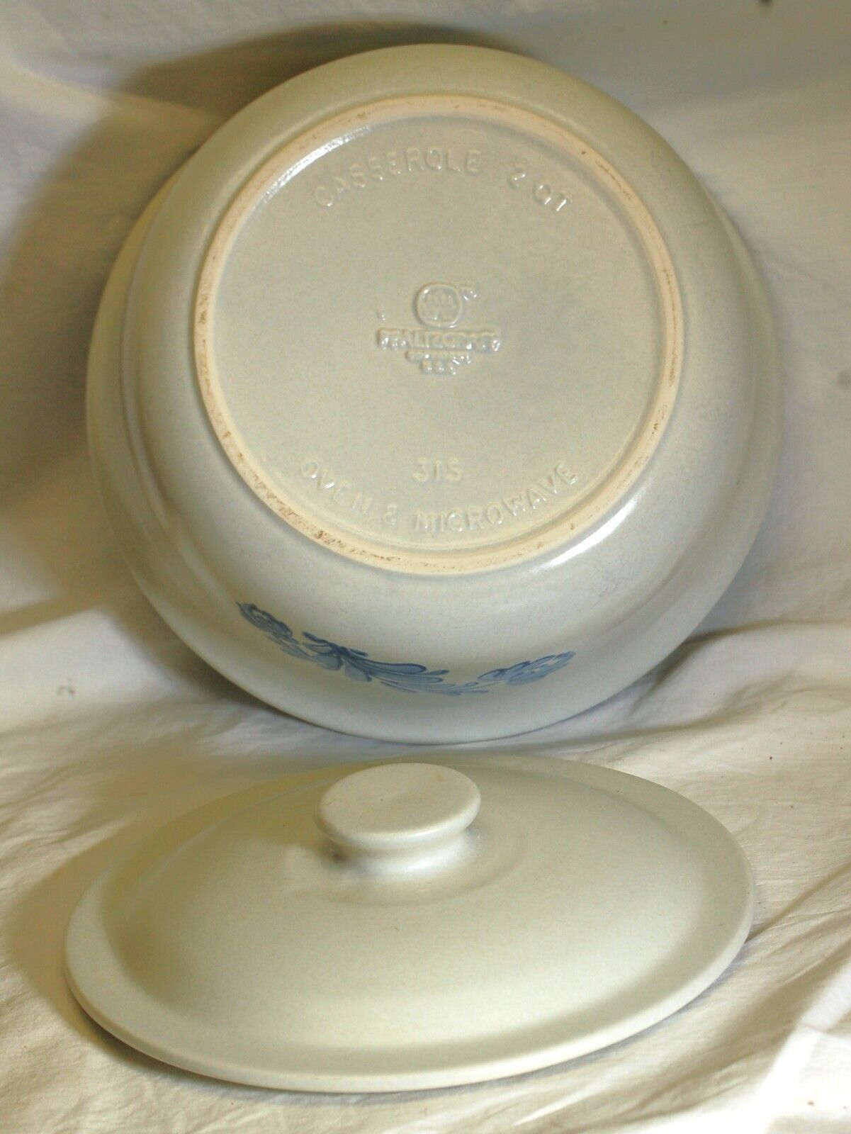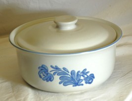 Yorktowne Pfaltzgraff Covered Casserole Dish Blue Floral Smooth Blue Trim USA