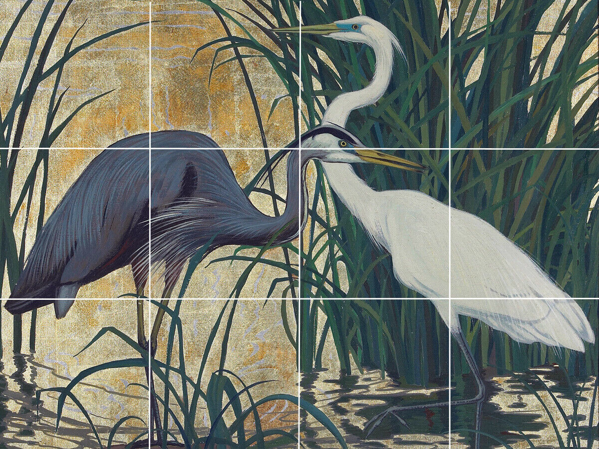 A Great Blue Heron And A Egret In Marsh and 50 similar items
