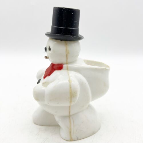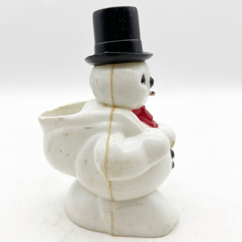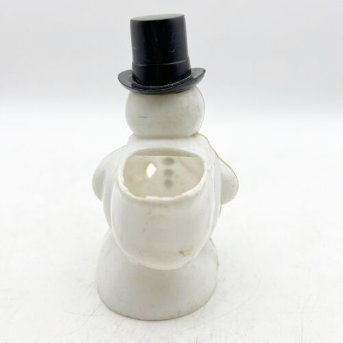 Vintage 4 3/4" Rosbro Hard Plastic Christmas SNOWMAN Candy Container