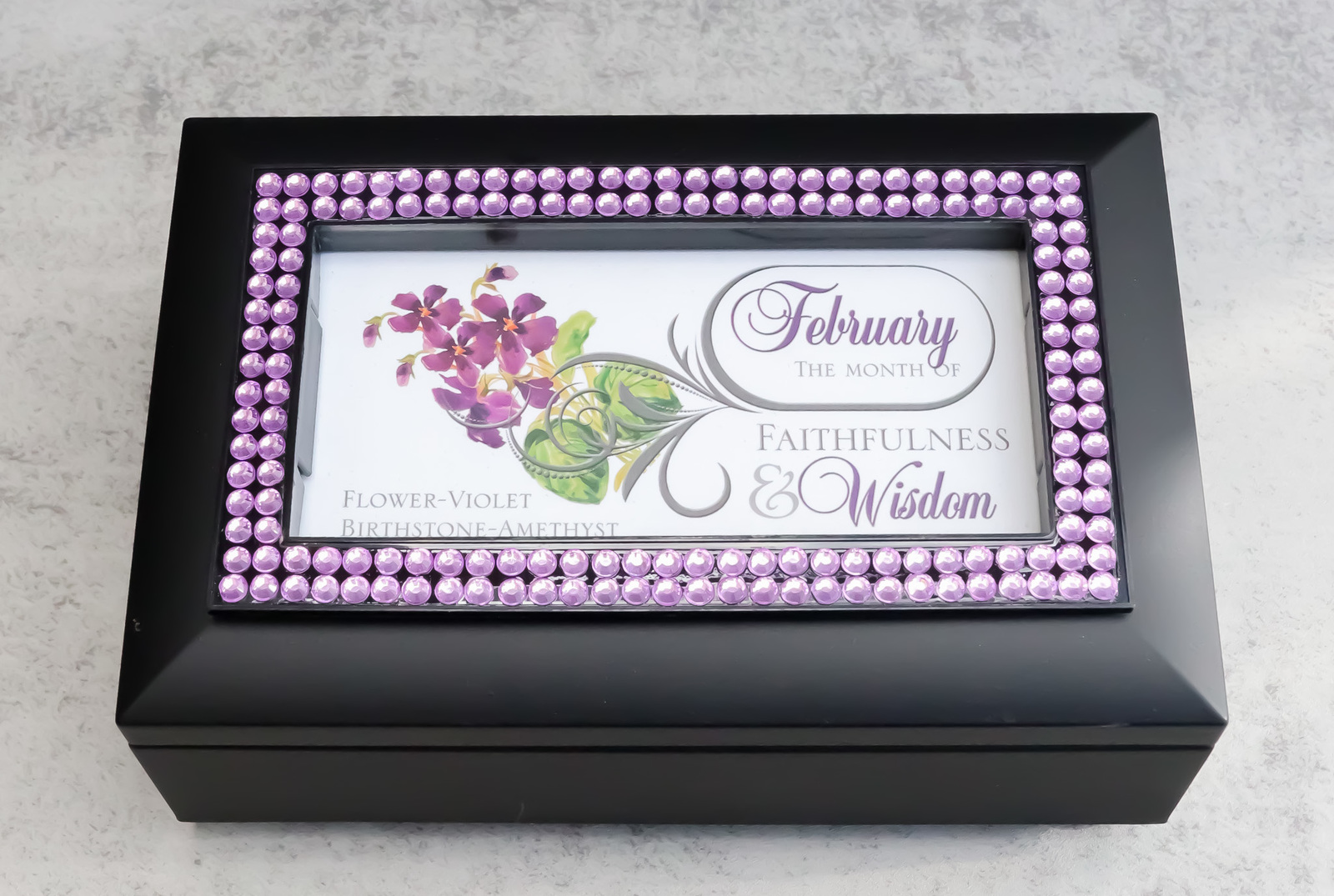 February Amethyst Birthstone Faithfulness And Wisdom Black Musical Trinket Box