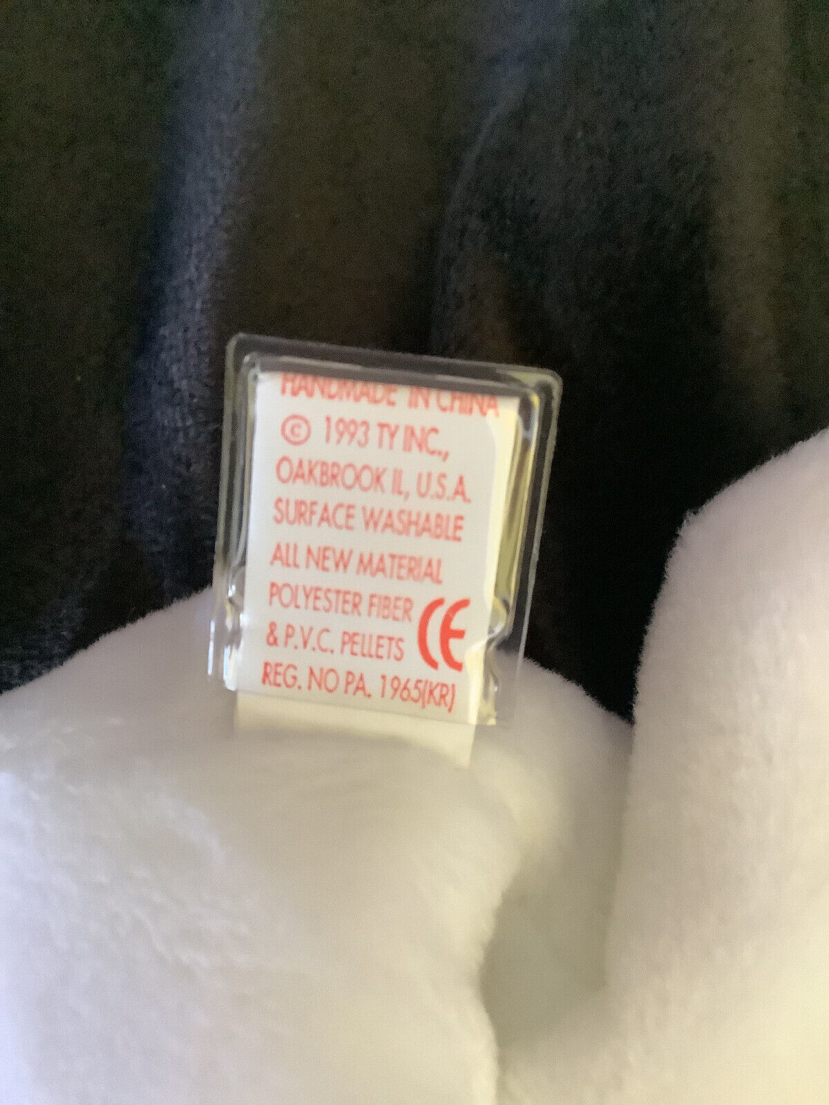 โข ULTRA RARE Most Valuable Critical Factory Tag Oddity # 2 ( Defective 1993 Pe Pellets Tush Tag. Should be 1993 PVC Pellets. Ty Inc. switched from using PVC pellets to Pe Pellets in 1998.This change was made to be more Environmentally friendly meaning Most Valuable Original PVC Pellets are inside this Ultra Rare 1993 Valentino.