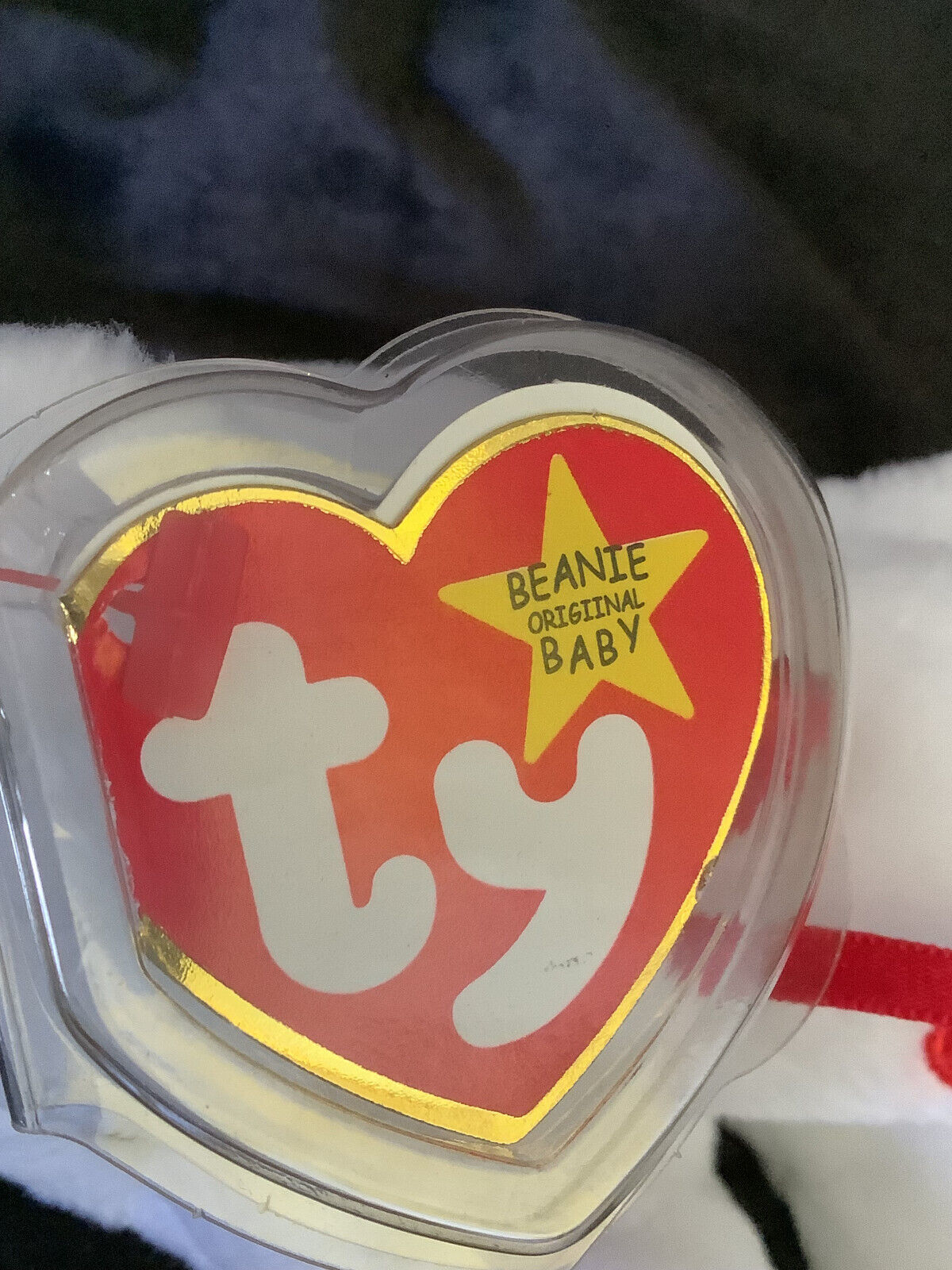 โข ULTRA RARE Most Valuable Factory Tag / Unique feature # 2 (Ty's Red Heart Logo Clearly Visible on the Back of the Tush Tag See Photo # 12 Above)