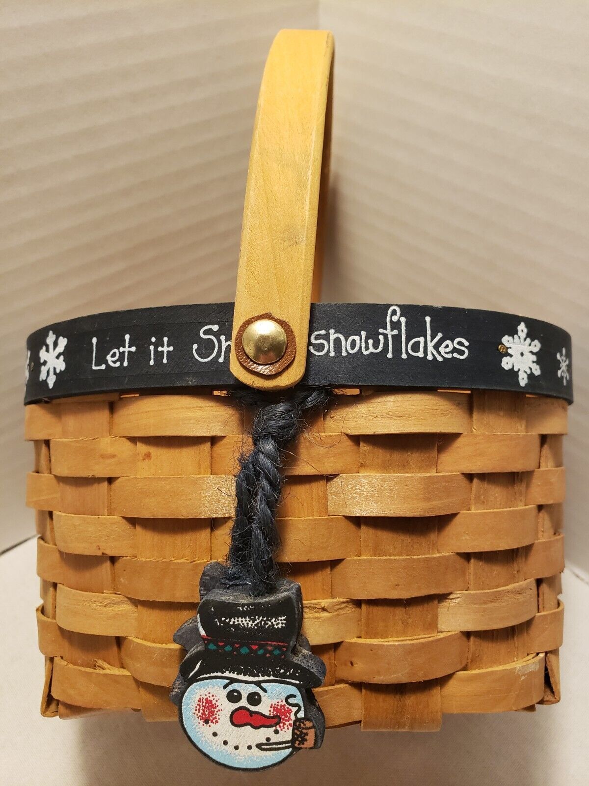 CHRISTMAS WICKER BASKET w/ HANDLE - FROSTY THE SNOWMAN - LET IT SNOW SNOWFLAKES