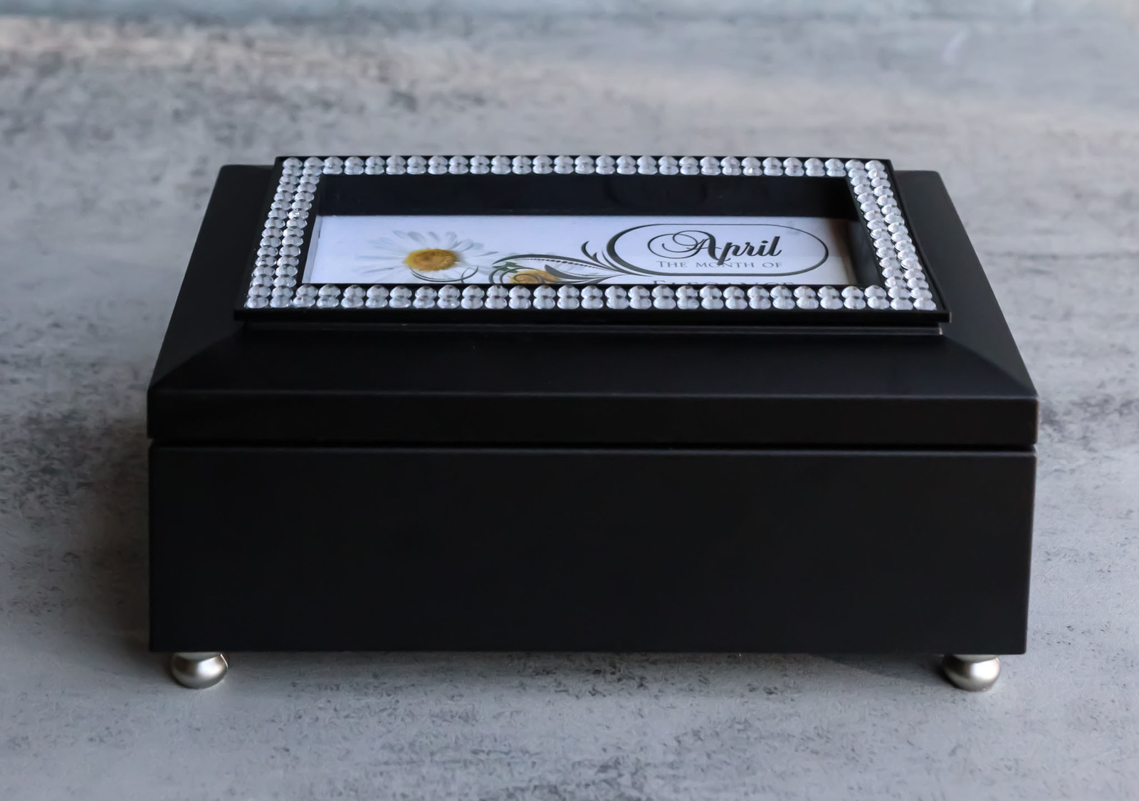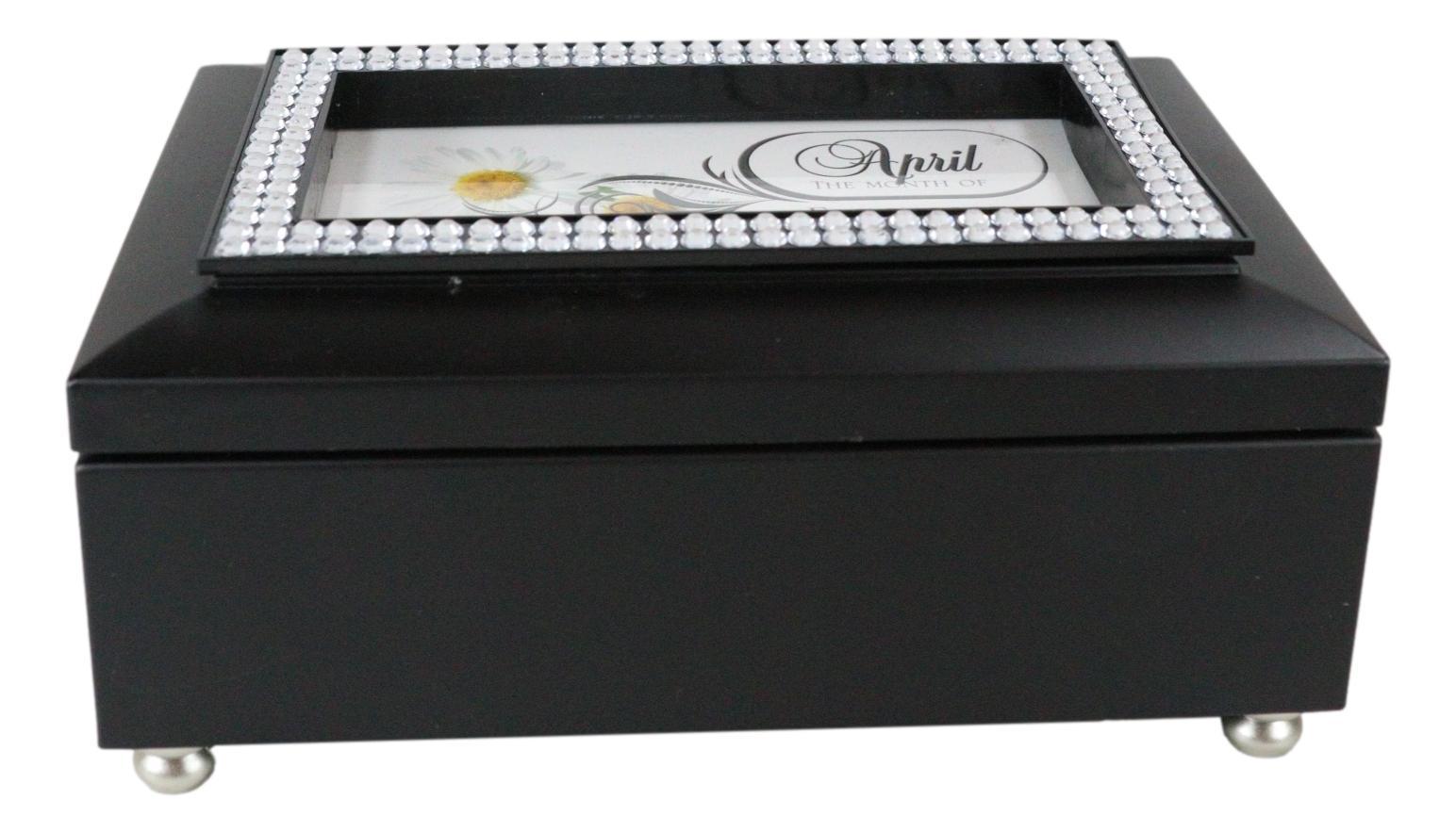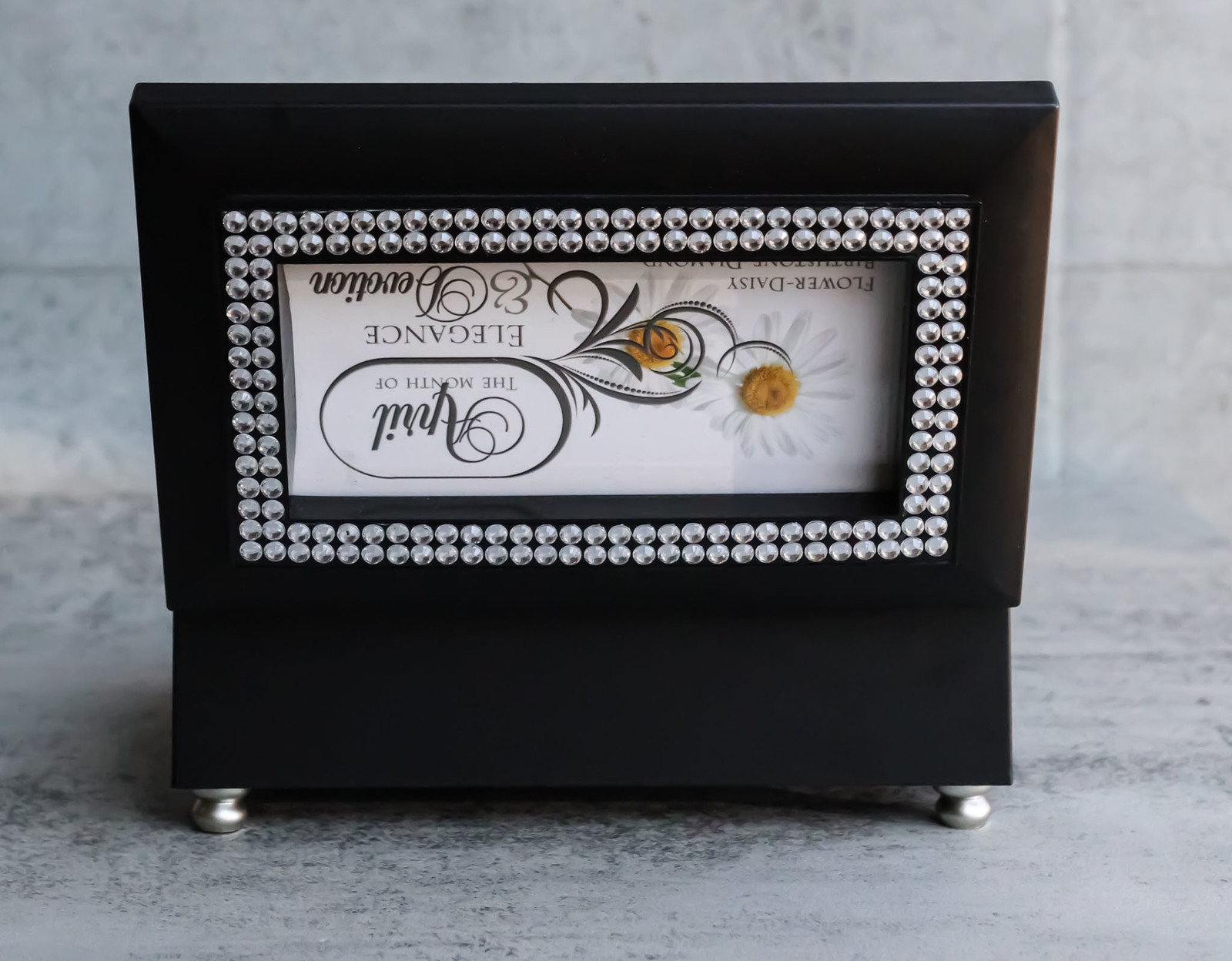 April Month Diamond Birthstone Elegance And Devotion Black Musical Trinket Box