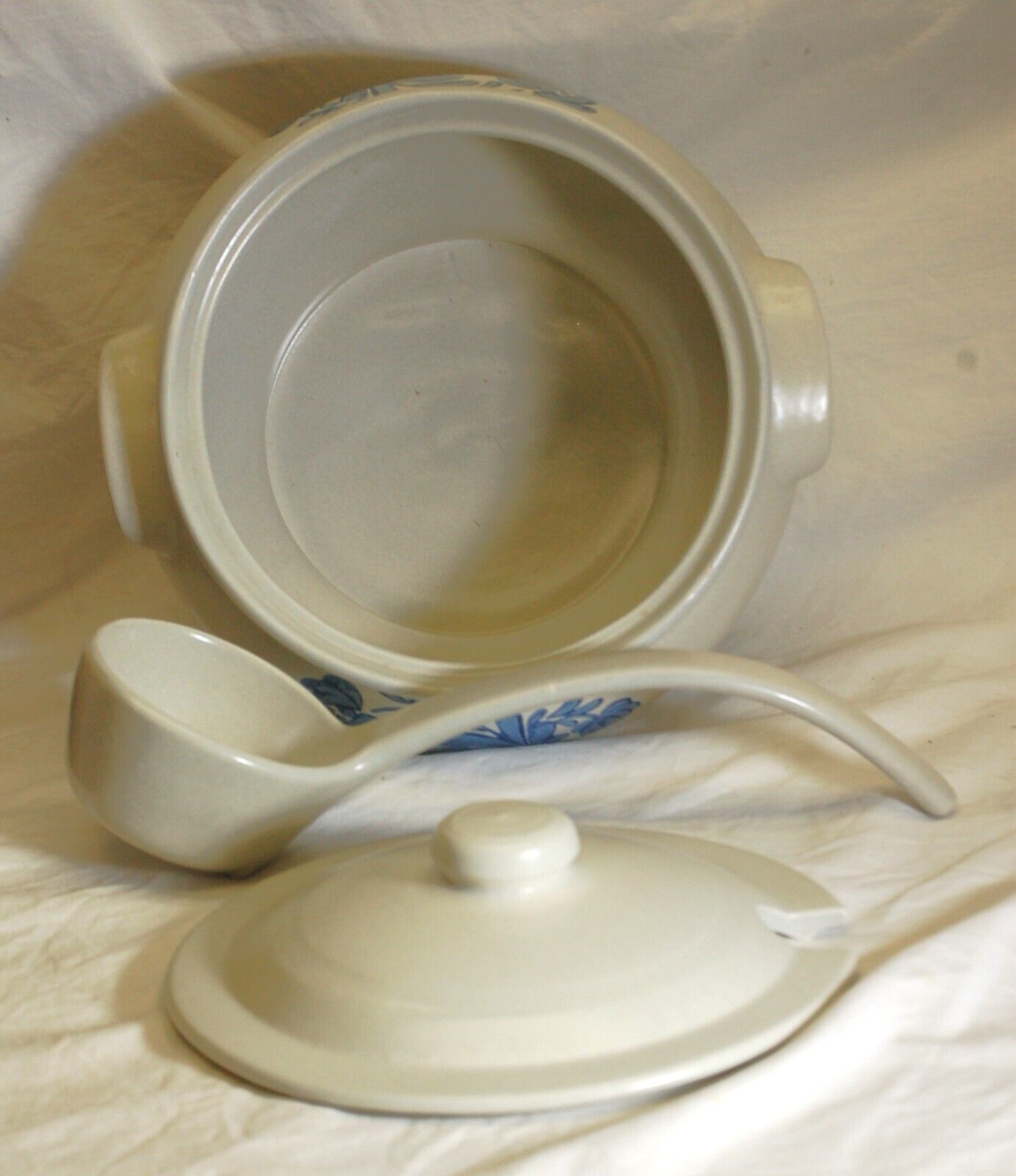 Yorktowne Pfaltzgraff Tureen & Lid with Ladle Blue Floral Smooth Blue Trim USA