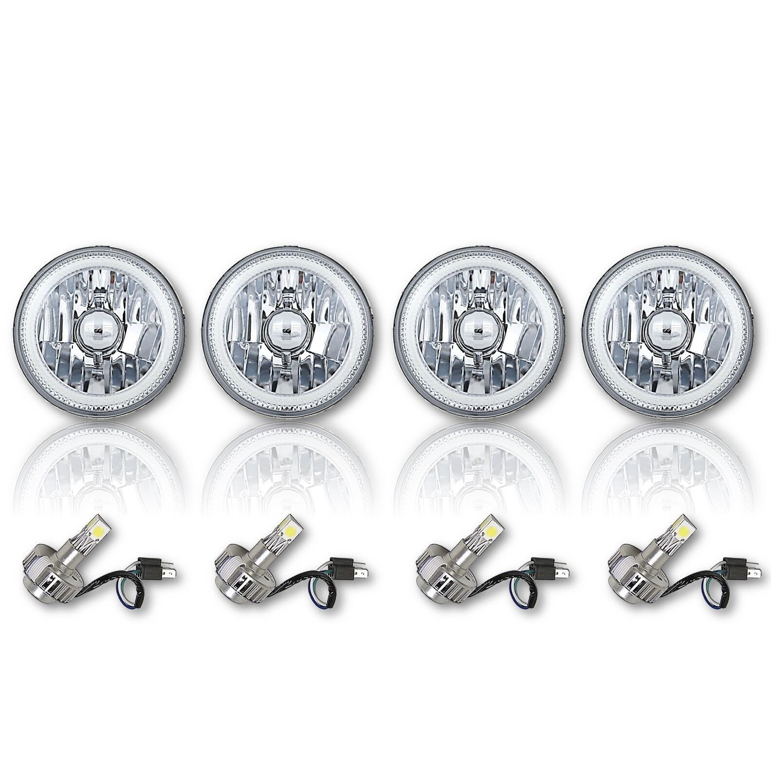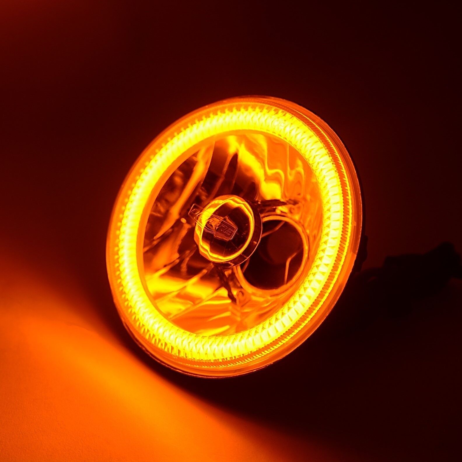 5-3/4" Crystal Clear Switchback White Halo DRL / Amber LED Turn Signal Angel Eye LED Bulb Headlight - Set of 4