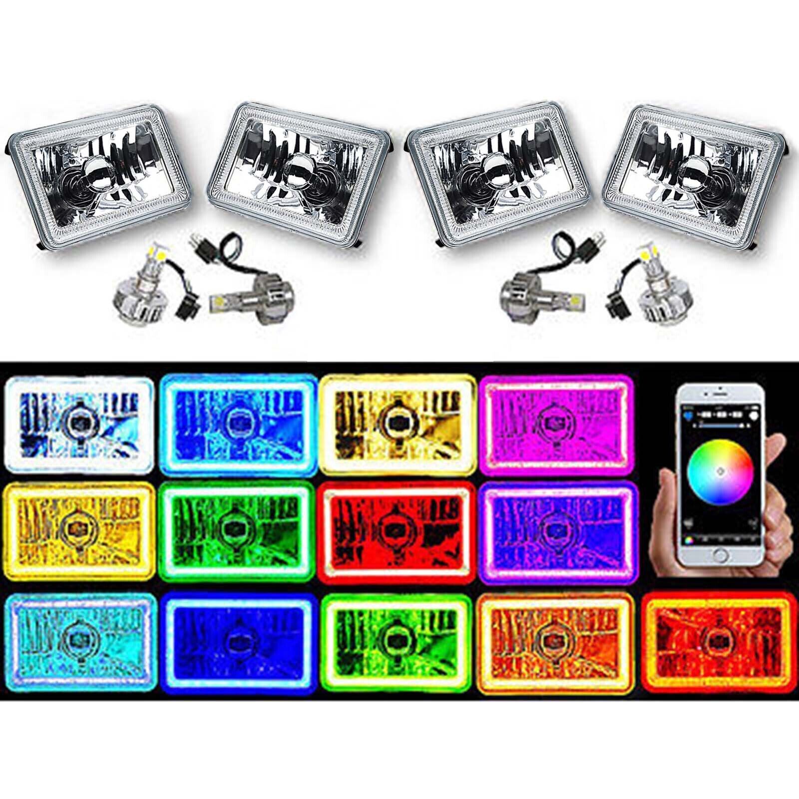 4X6" BLUETOOTH Color Change RGB SMD Halo Angel Eye Headlight LED Light Bulbs Set
