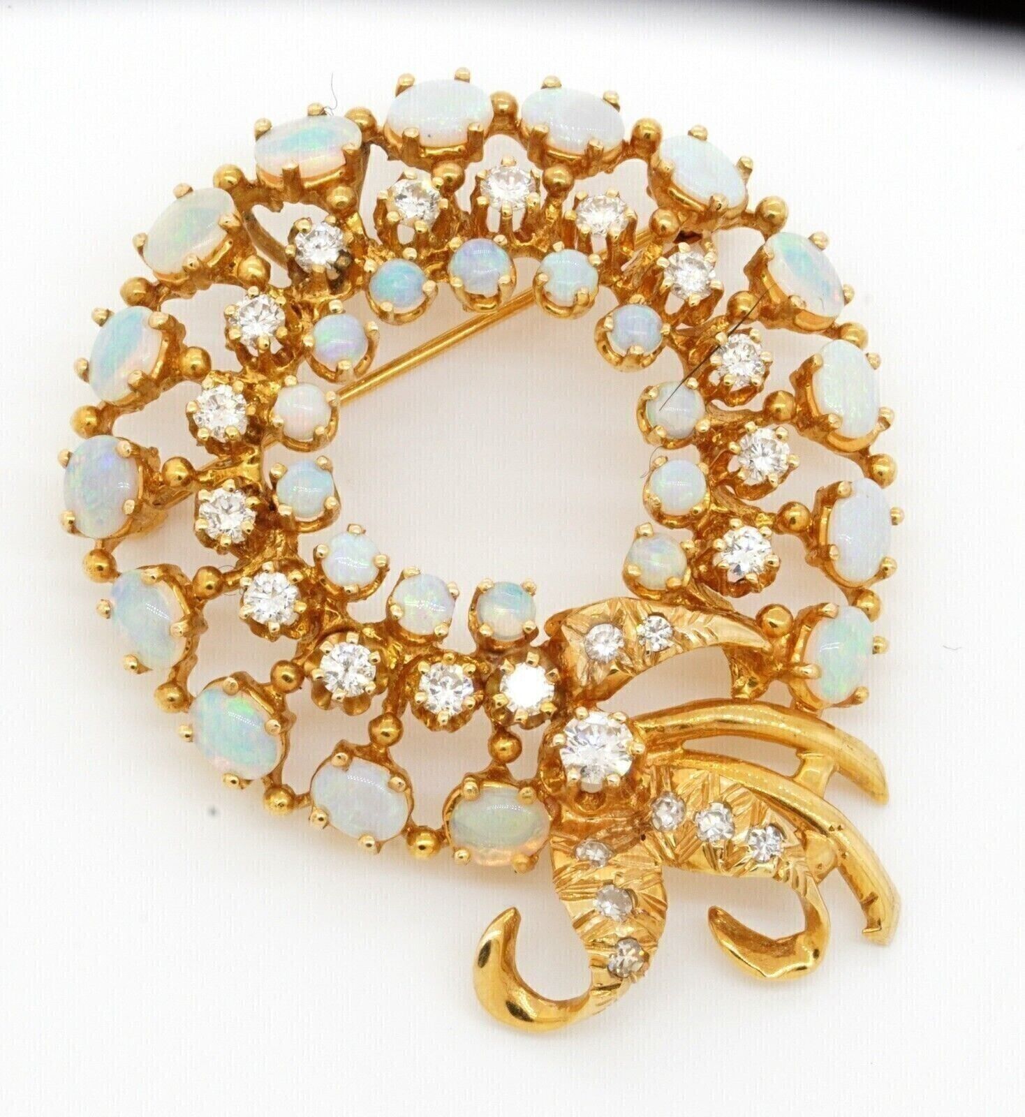 2Ct Round Cut Fire Opal Flower Wedding Brooch Pin 14K Yellow Gold Plated