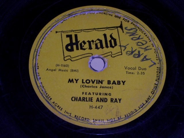 This is a 78 rpm recording by Charlie And Ray. Title: "My Lovin' Baby"/"Take A Look At Me". Record label Herald 447.