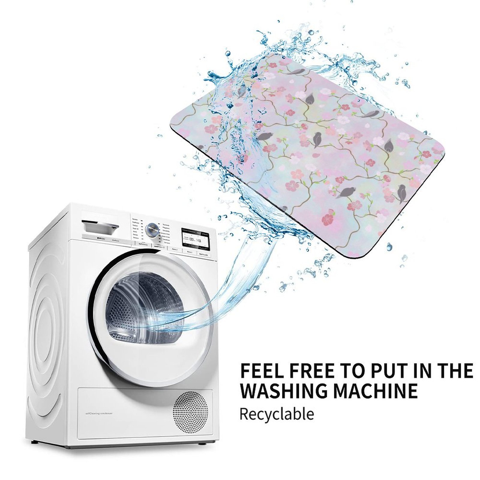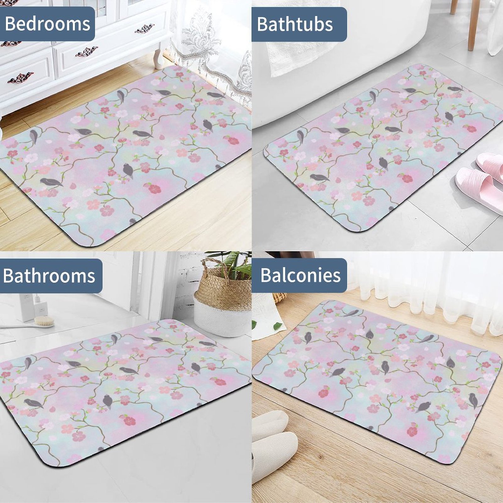 Flowers Floral Colorful Bird Absorbent Kitchen Rug Bathroom Floor Mat For Bathtub Home House Cars Gym Office