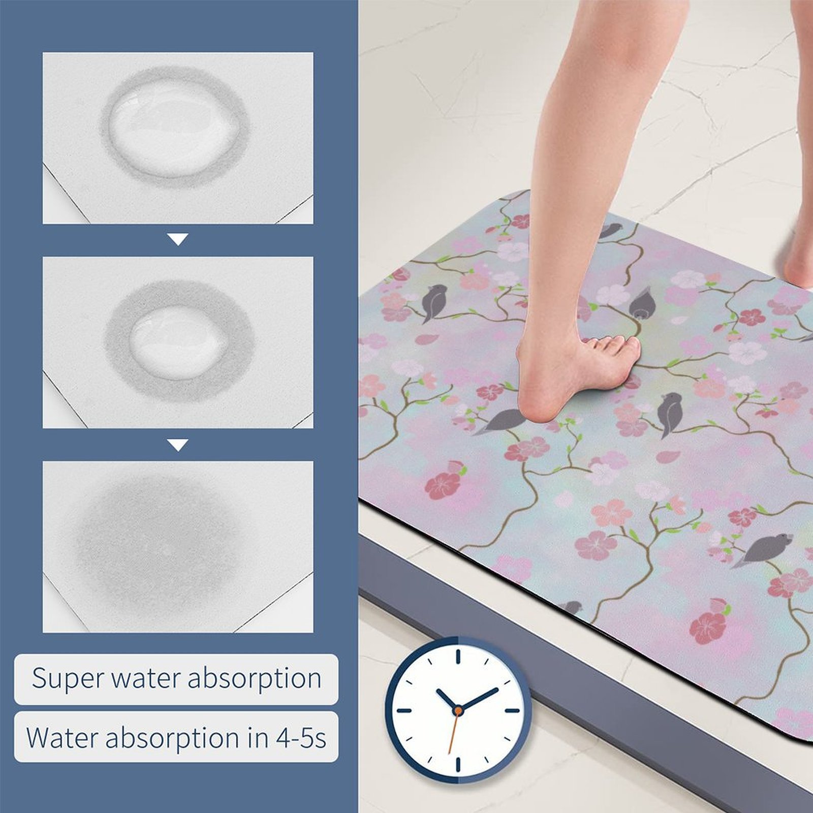 Mondxflaur Floral Non Slip Bathroom Mat for Shower Quick Dry Diatom Mud Rugs