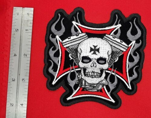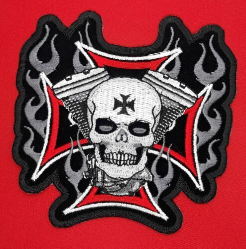 Maltese Cross With Skull V Twin Iron On Embroidered Patch 4"x 4"