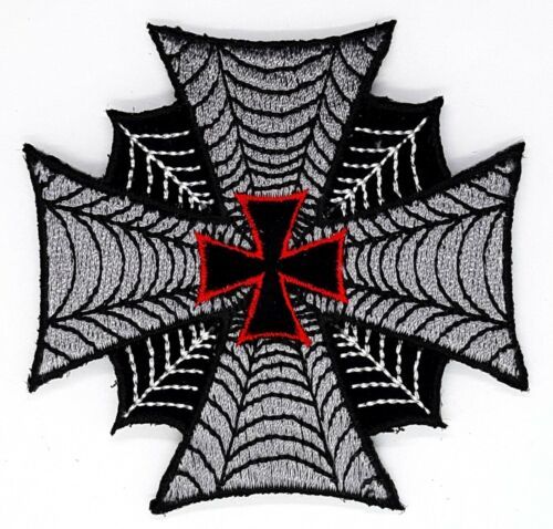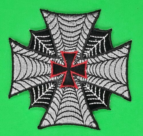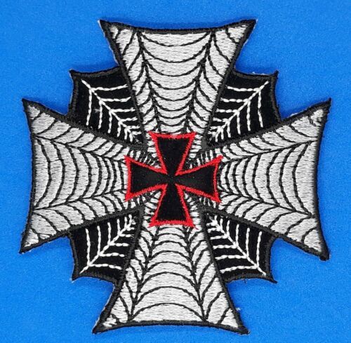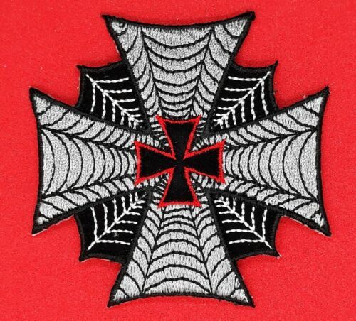 Maltese / Iron Cross With Spider Webs Iron On Embroidered Patch 3 "X 3 "